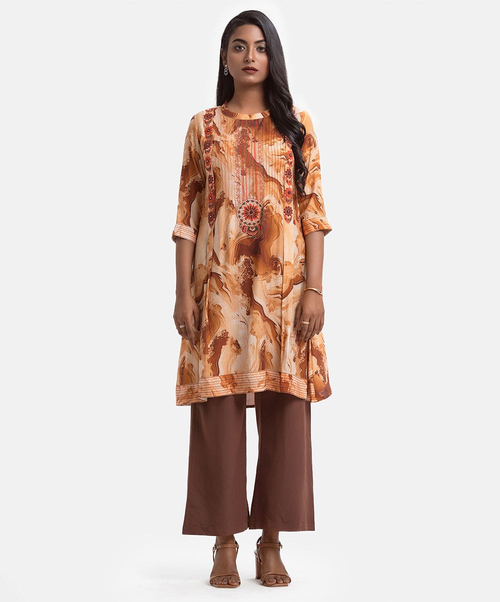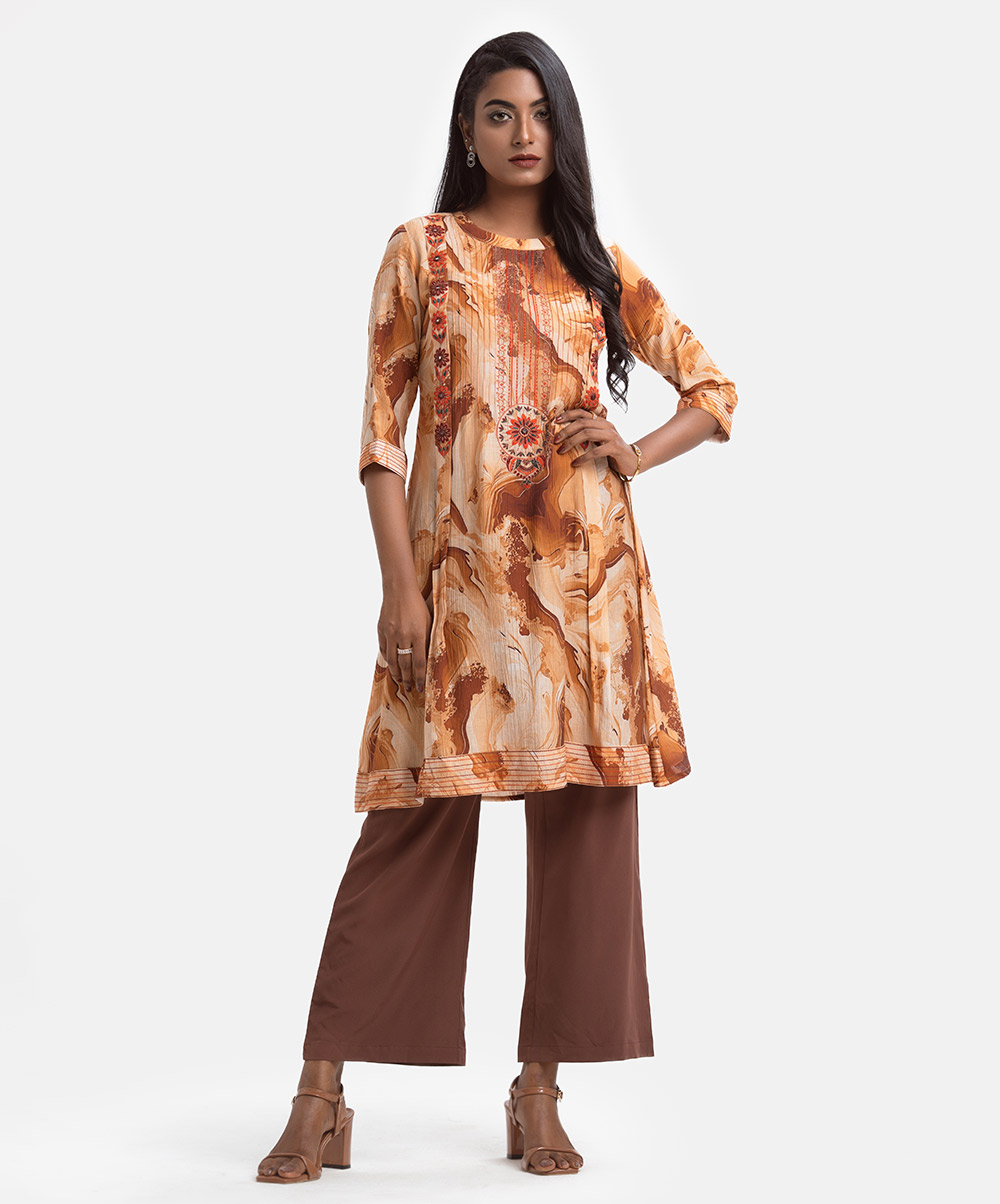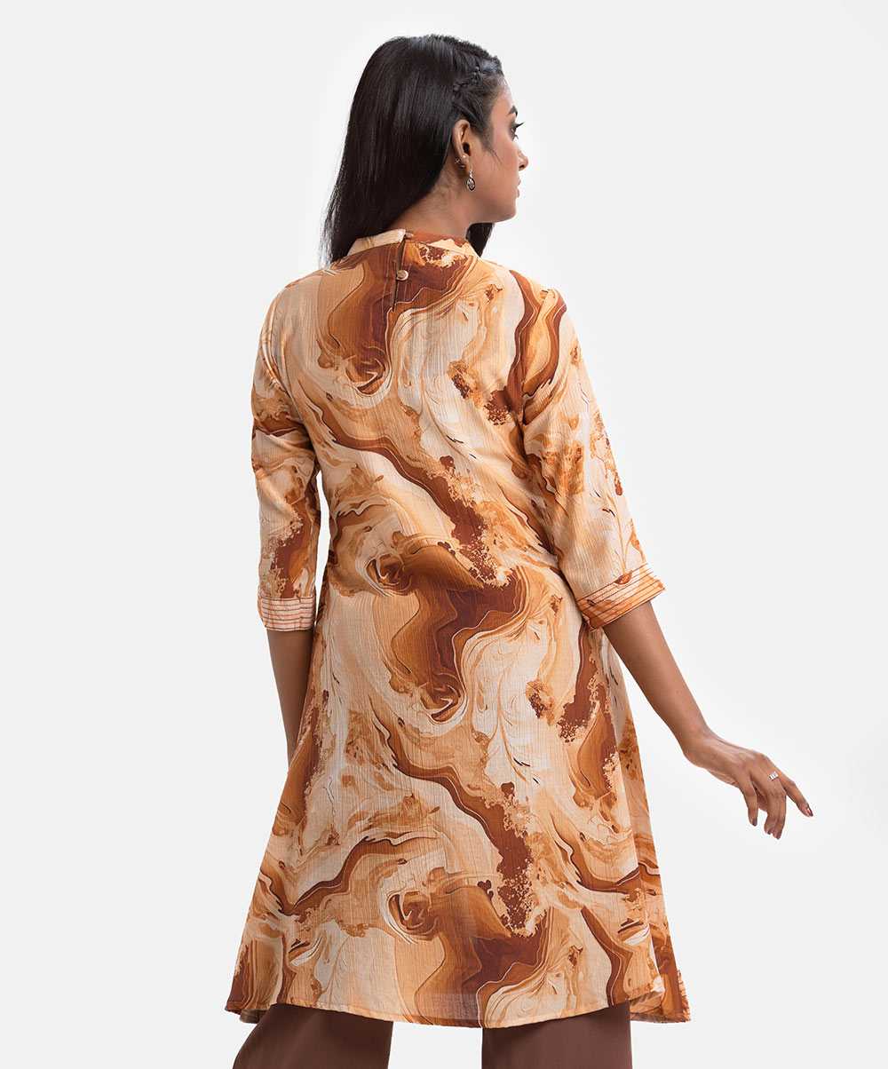 Brown Blended Cotton A-line Tunic