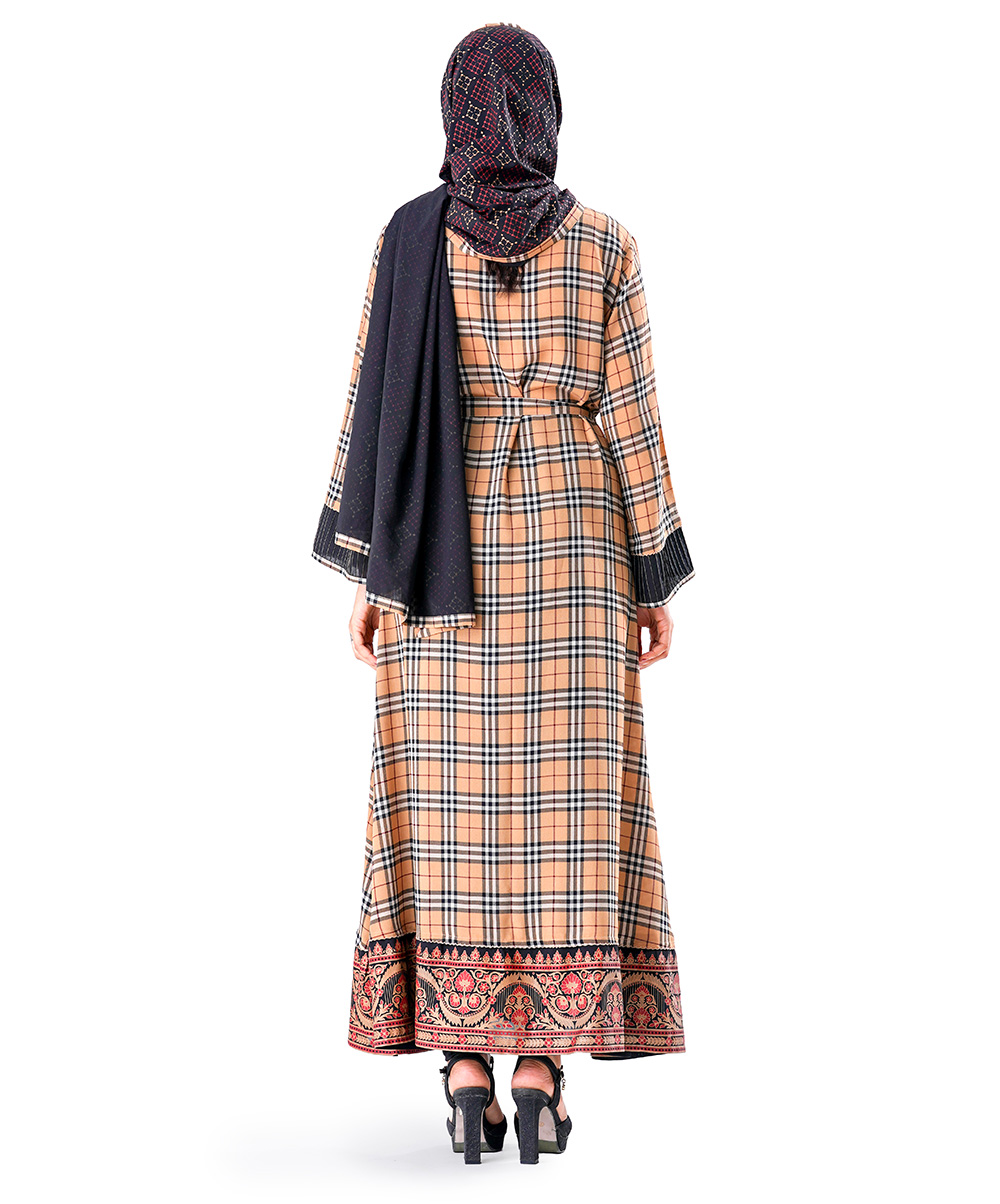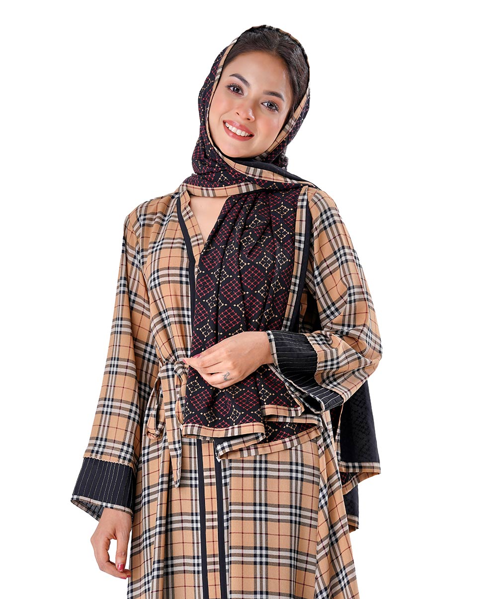 ladies abaya tunic with hijab work with screen print on georgette fabric