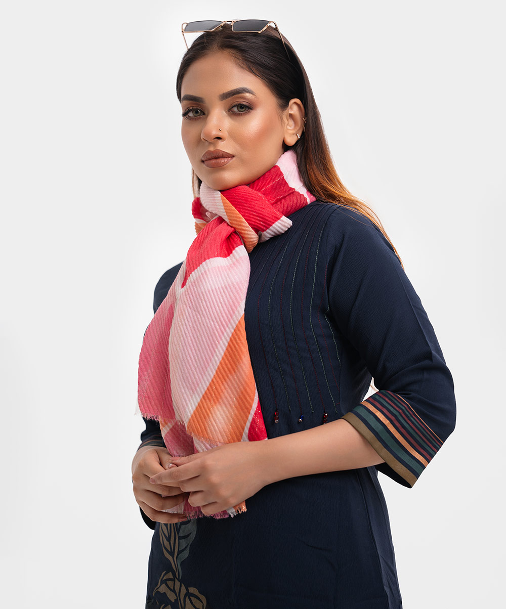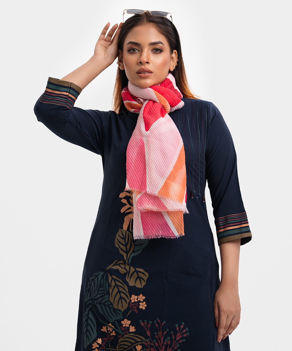 Women’s printed scarf in cotton blended fabric.