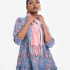 Women’s printed scarf in blended cotton fabric. Fringe trim at the border.