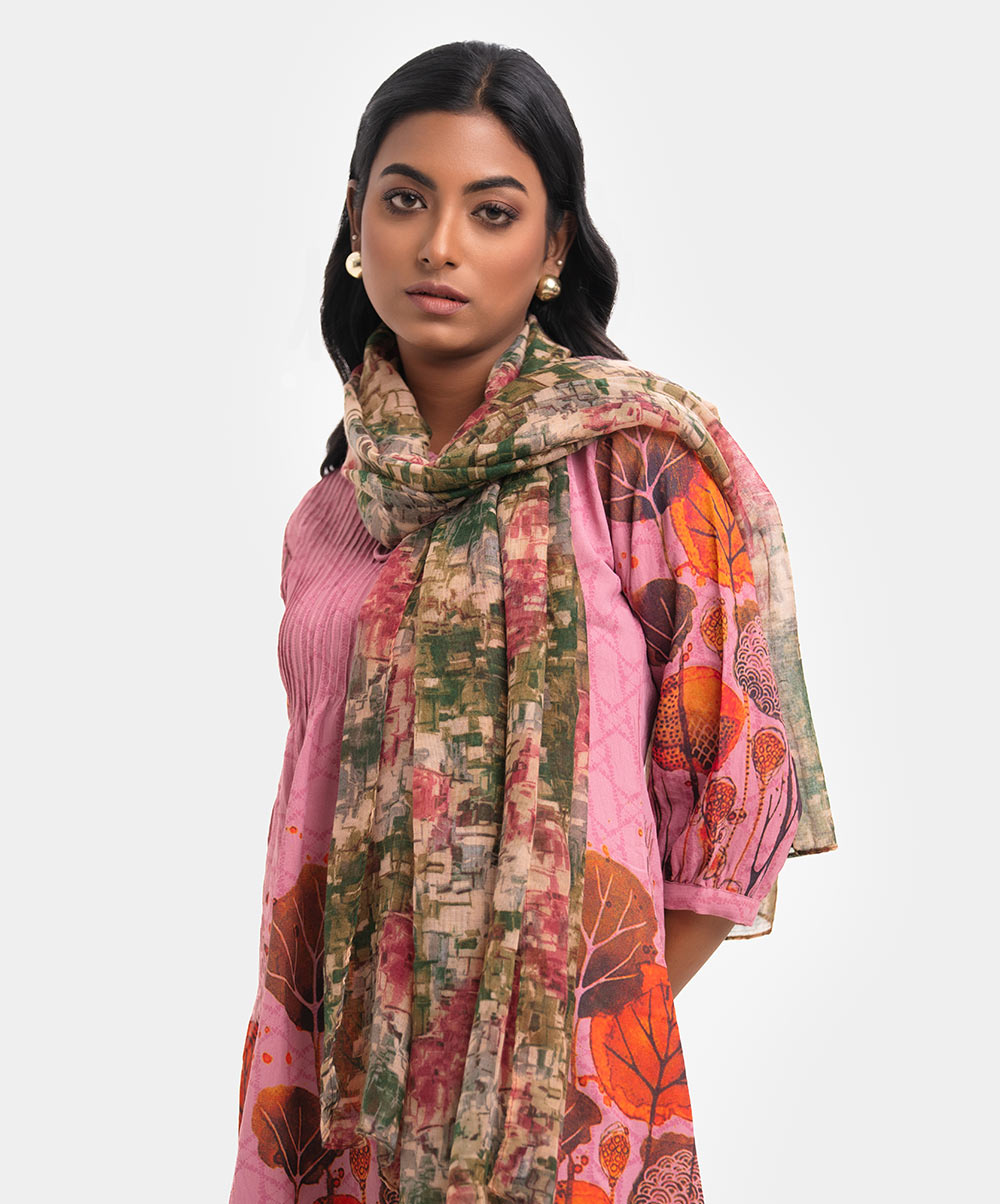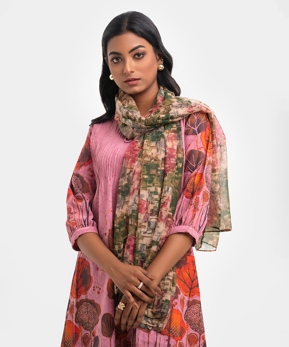 Women’s printed scarf in cotton blended fabric.