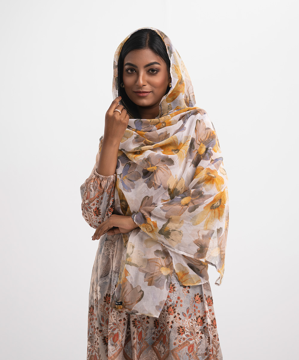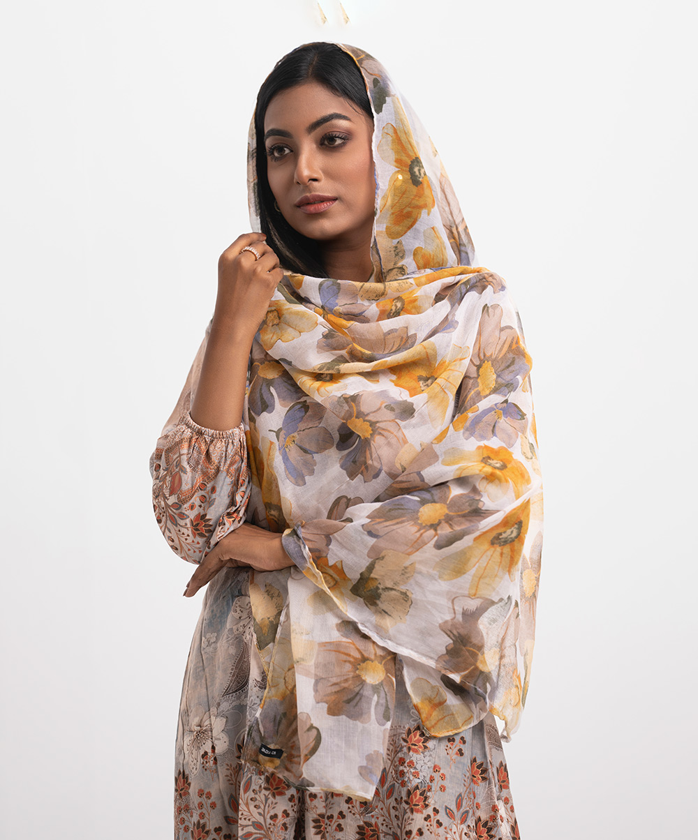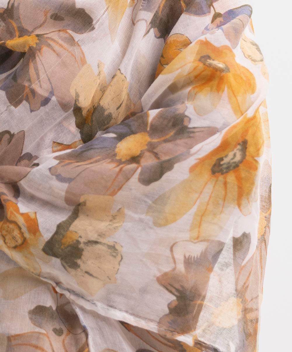 Women’s floral printed scarf in blended cotton fabric.