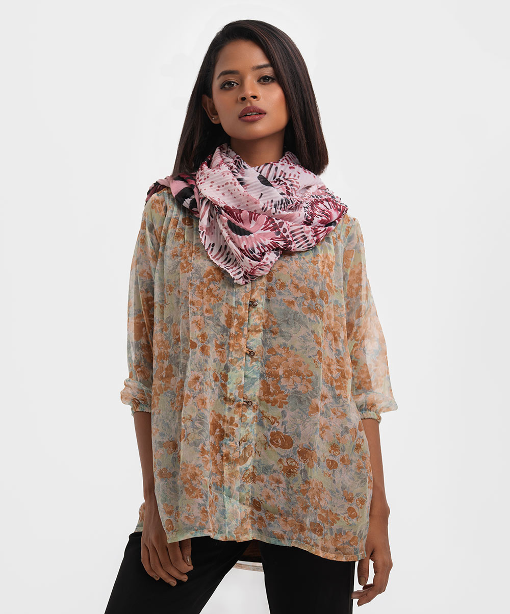 Women’s printed scarf in cotton-blended fabric.