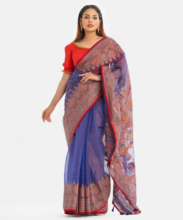 All over screen printed sharee with heavy carchupi at anchol.