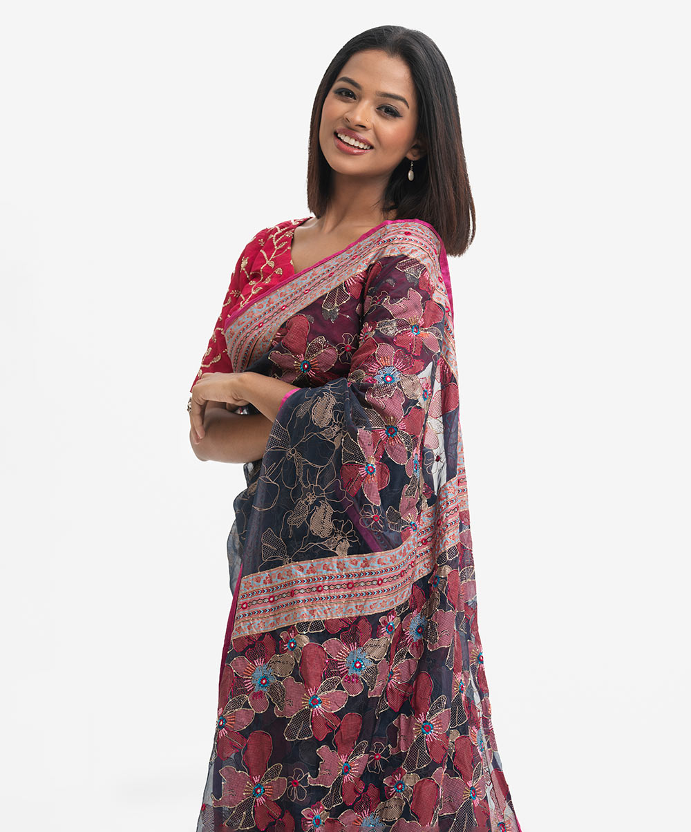 Black & Pink Muslin Exclusive Saree