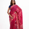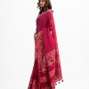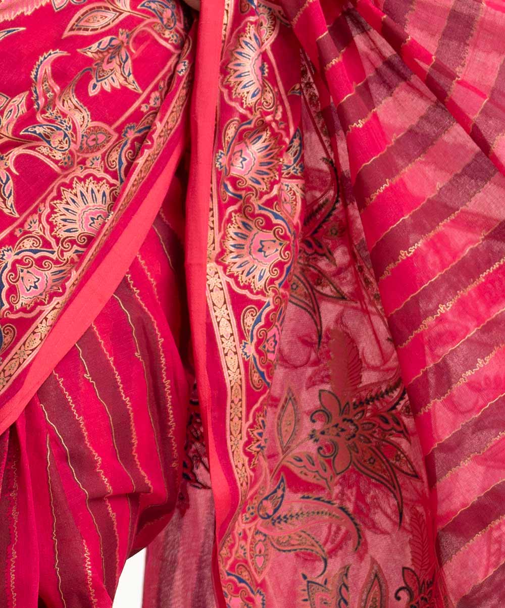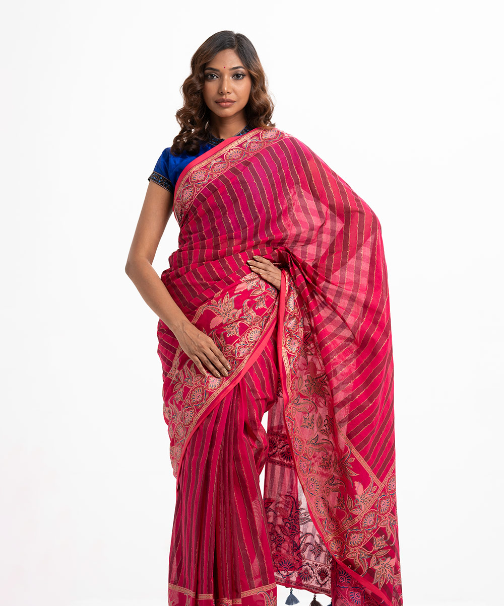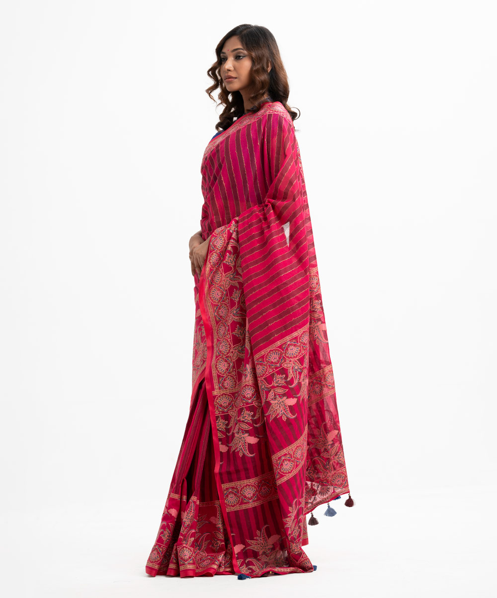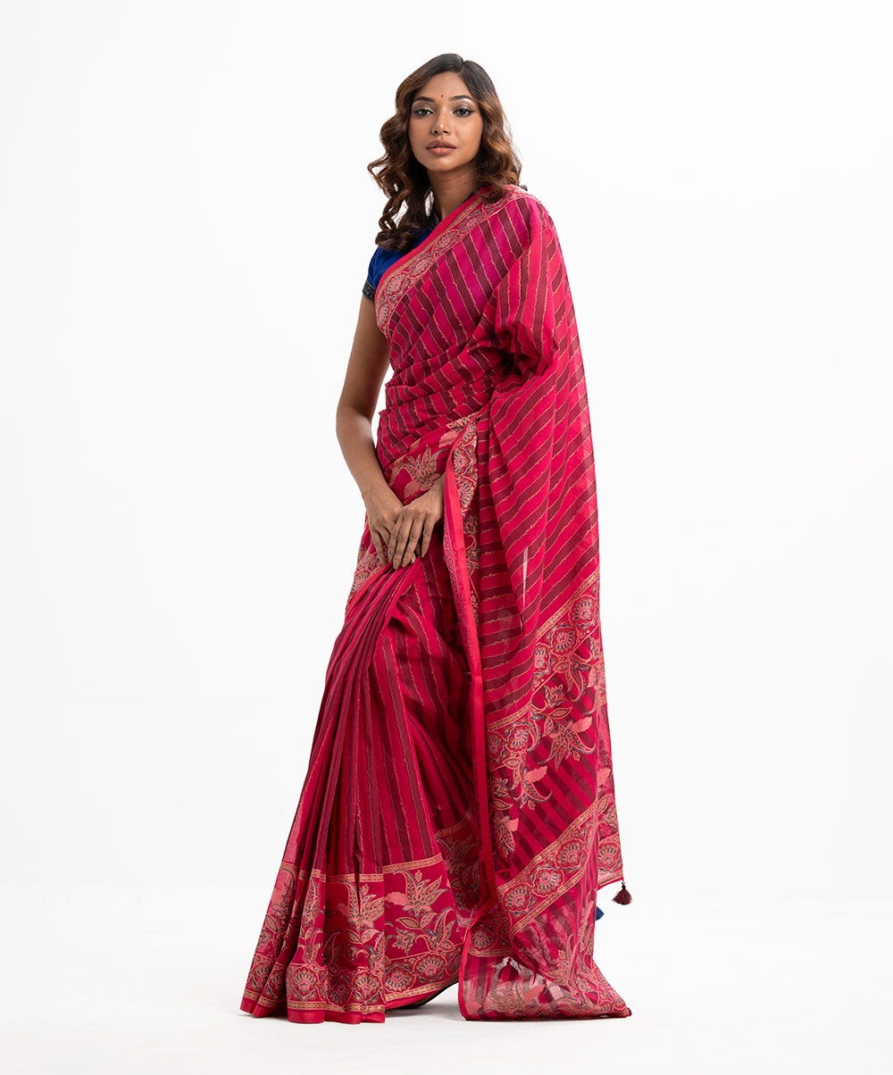 Women’s cotton saree with weaving details. Tassels on the achal.