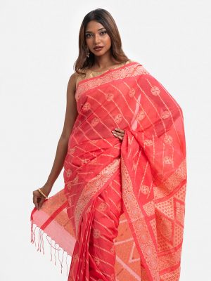 Bright Pink Cotton Karchupi Saree