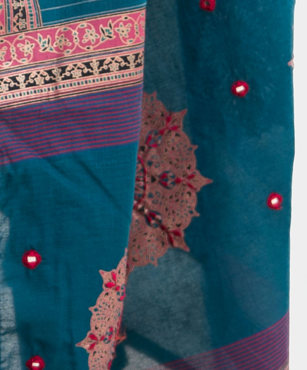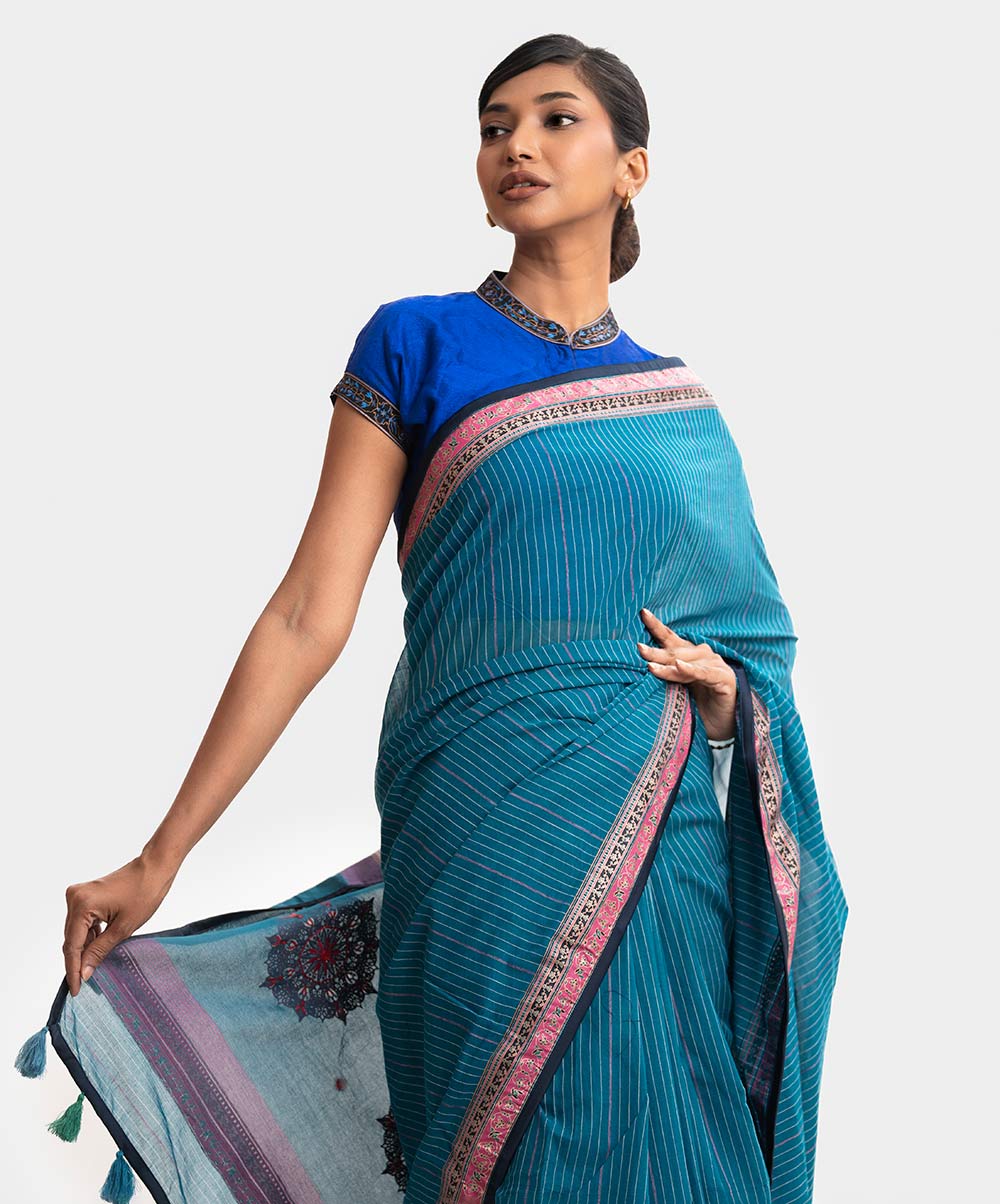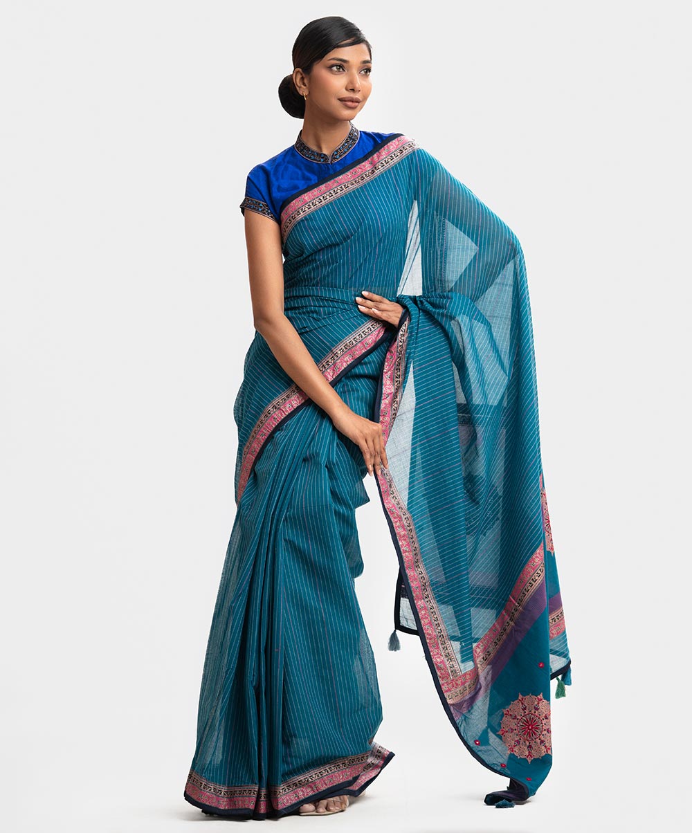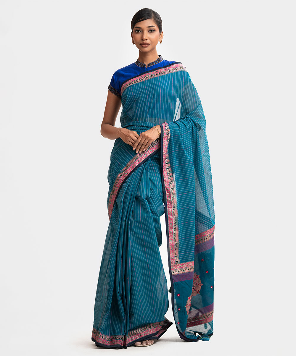 Teal Blue Cotton Saree