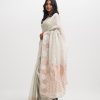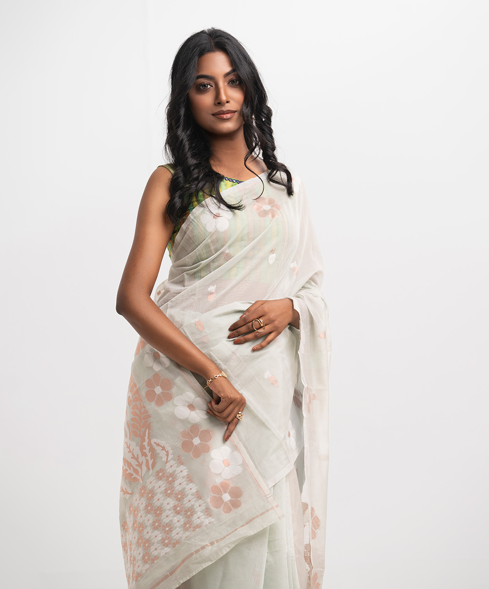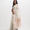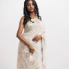 Women’s printed art silk saree with weaving details.