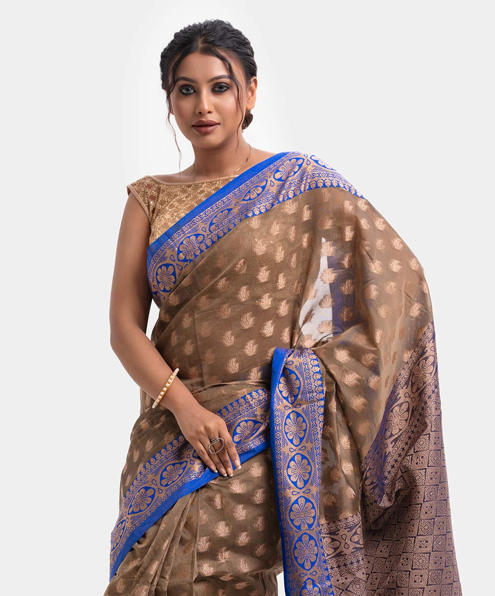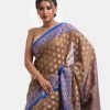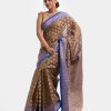 Women’s printed art silk katan saree with weaving details.