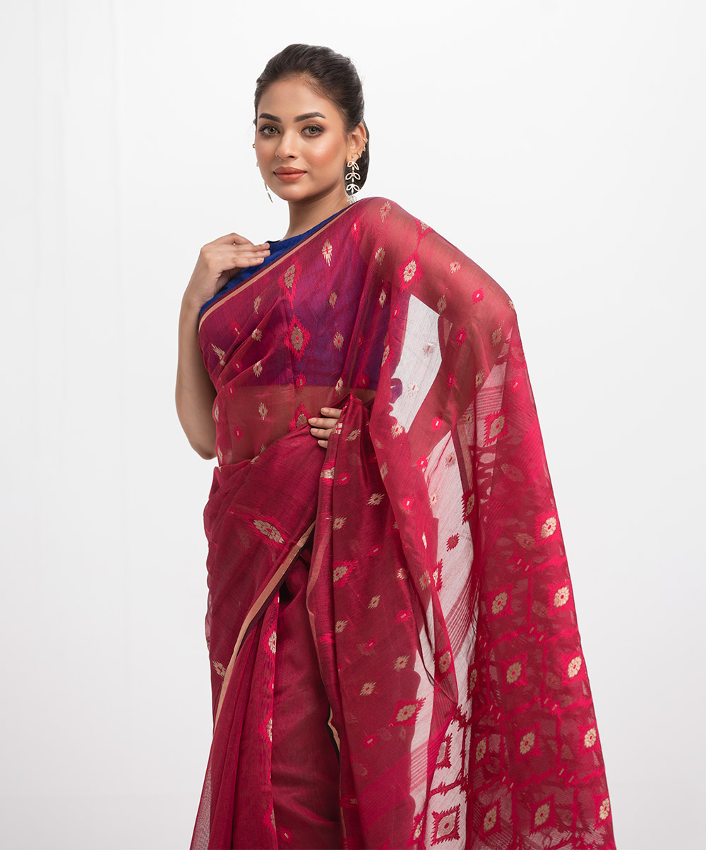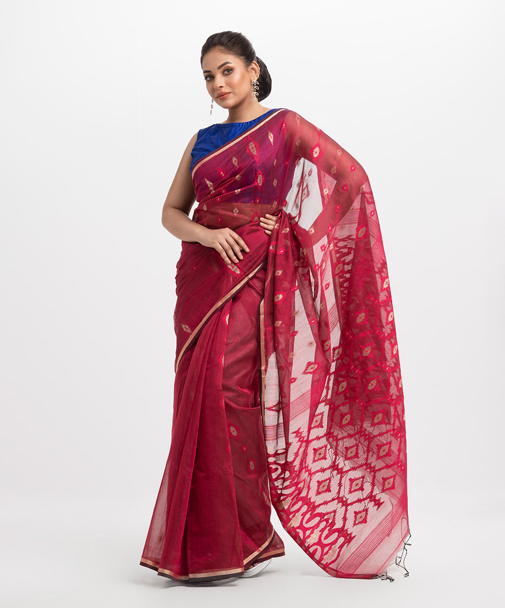 Maroon Half-silk Saree