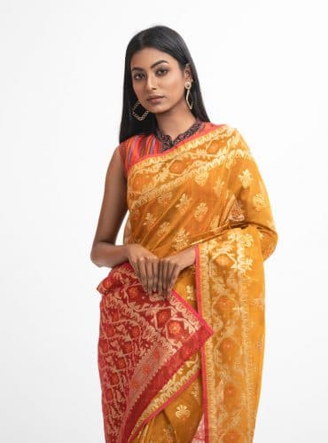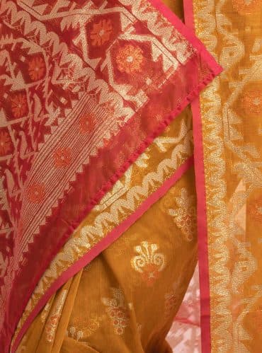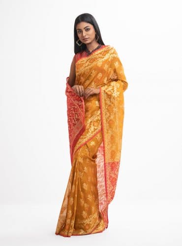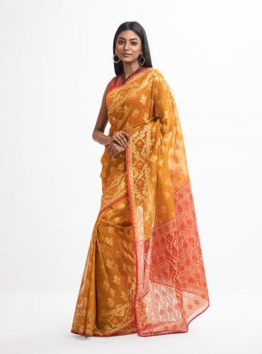All-over weaving details saree in half-silk fabric. Tassels at the border of Aanchal.