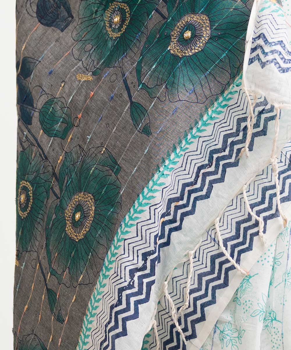 White Cotton Embroidered Saree