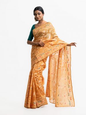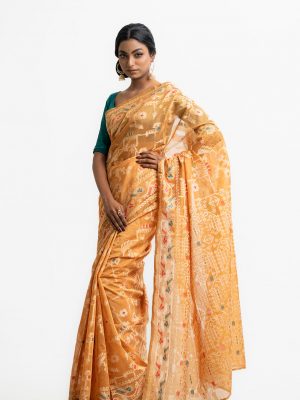 All-over weaving details saree in half-silk fabric. Tassels at the border of Aanchal.