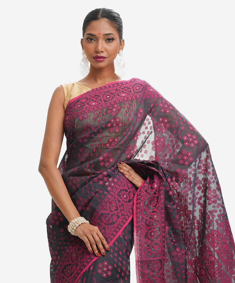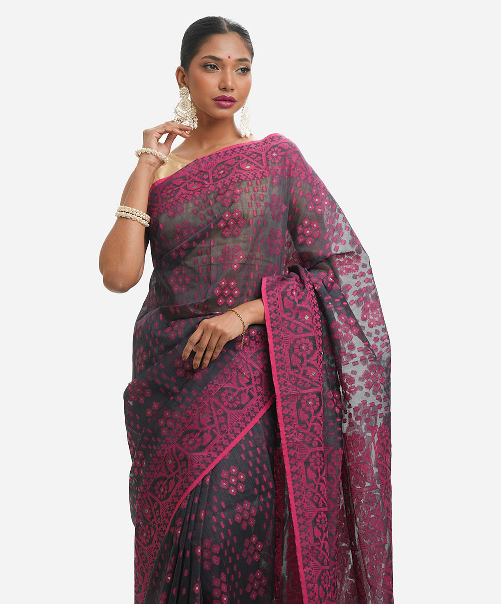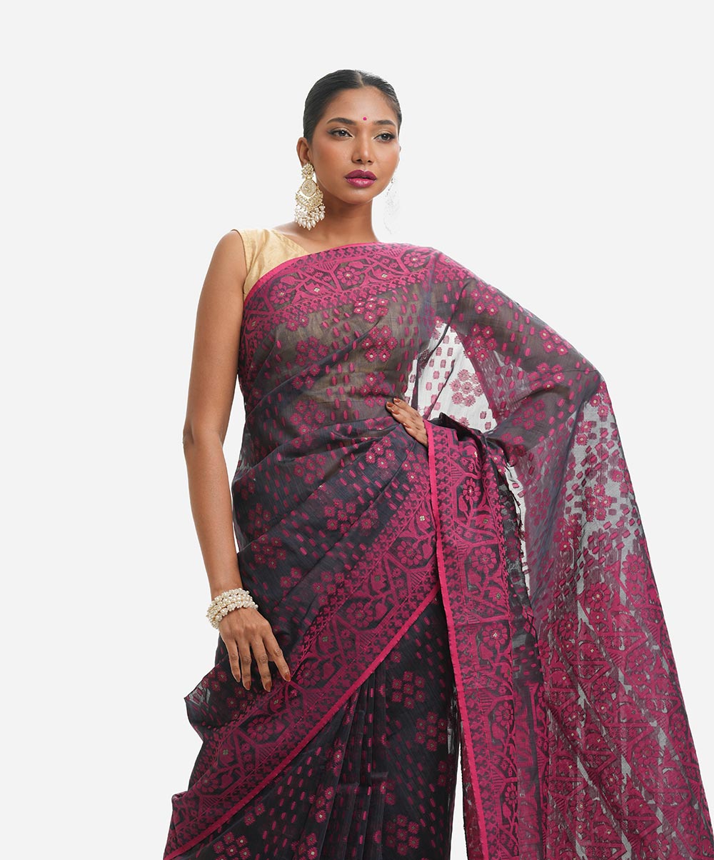 Black & Pink Half-silk Saree