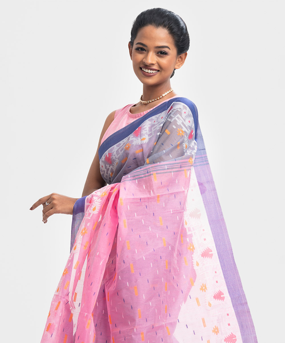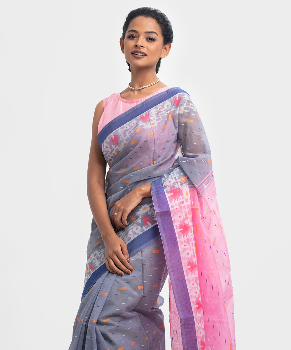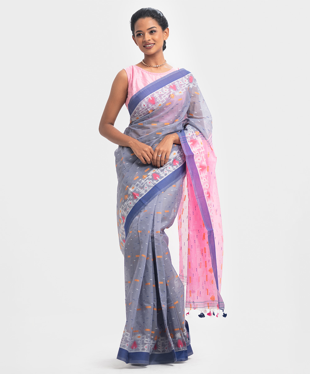 All-over weaving details saree in half-silk fabric. Tassels at the border of Aanchal.