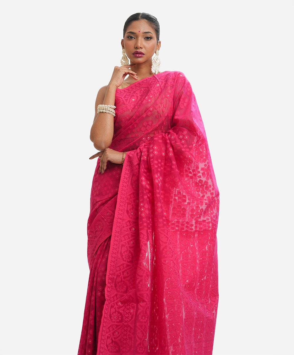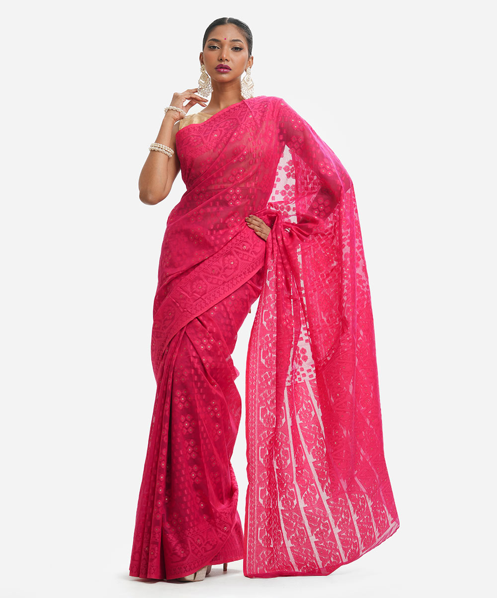 Bright Pink Half-silk Saree