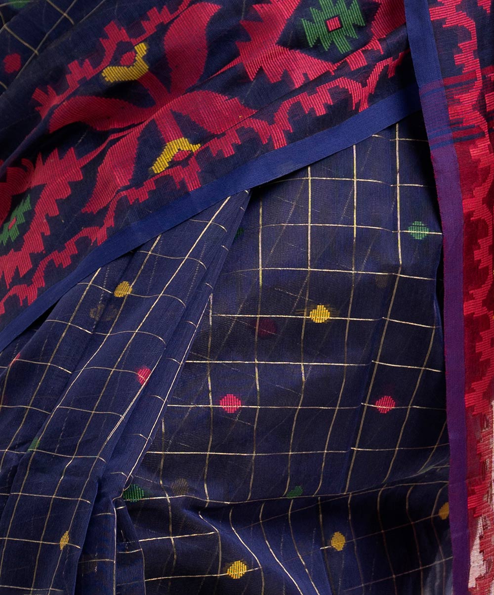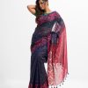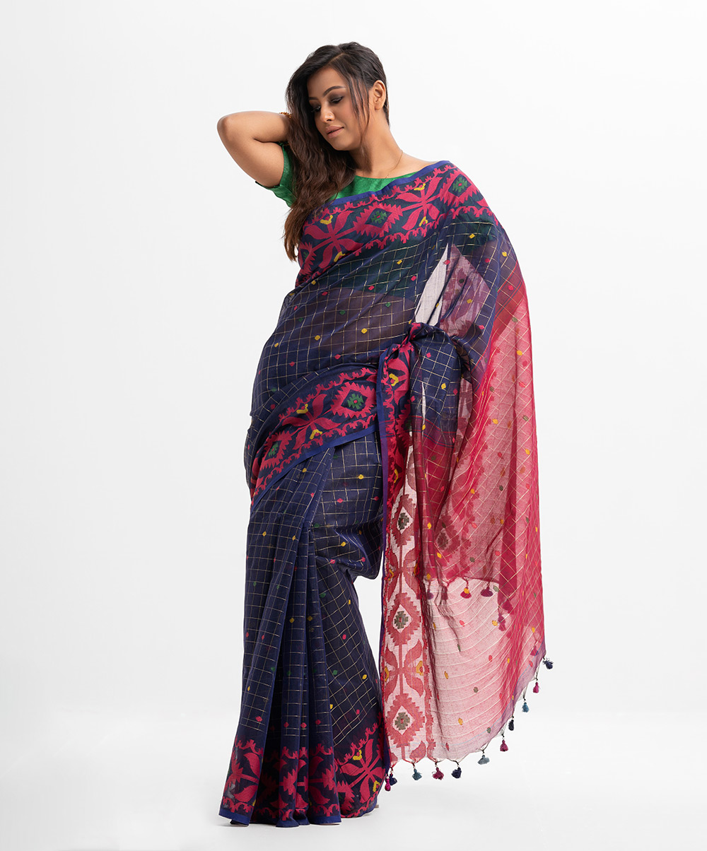 Women’s half silk saree with weaving details.