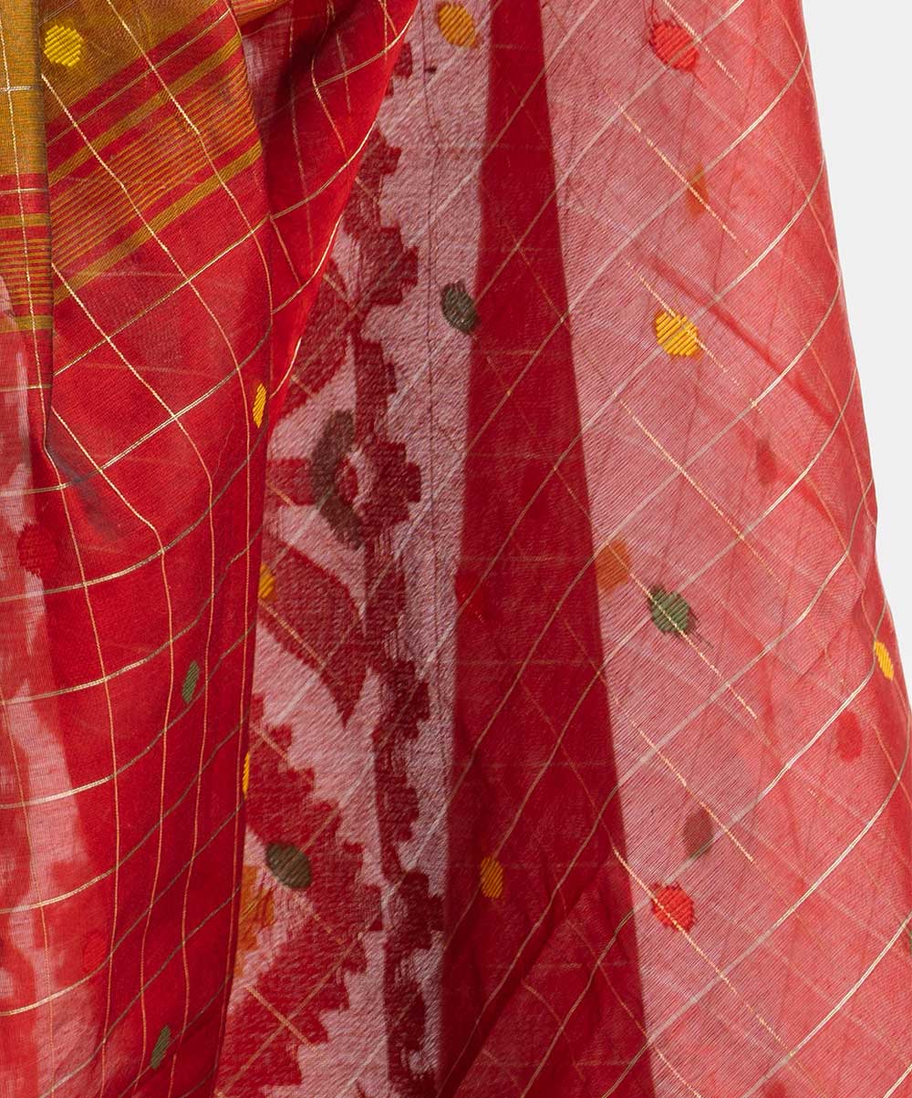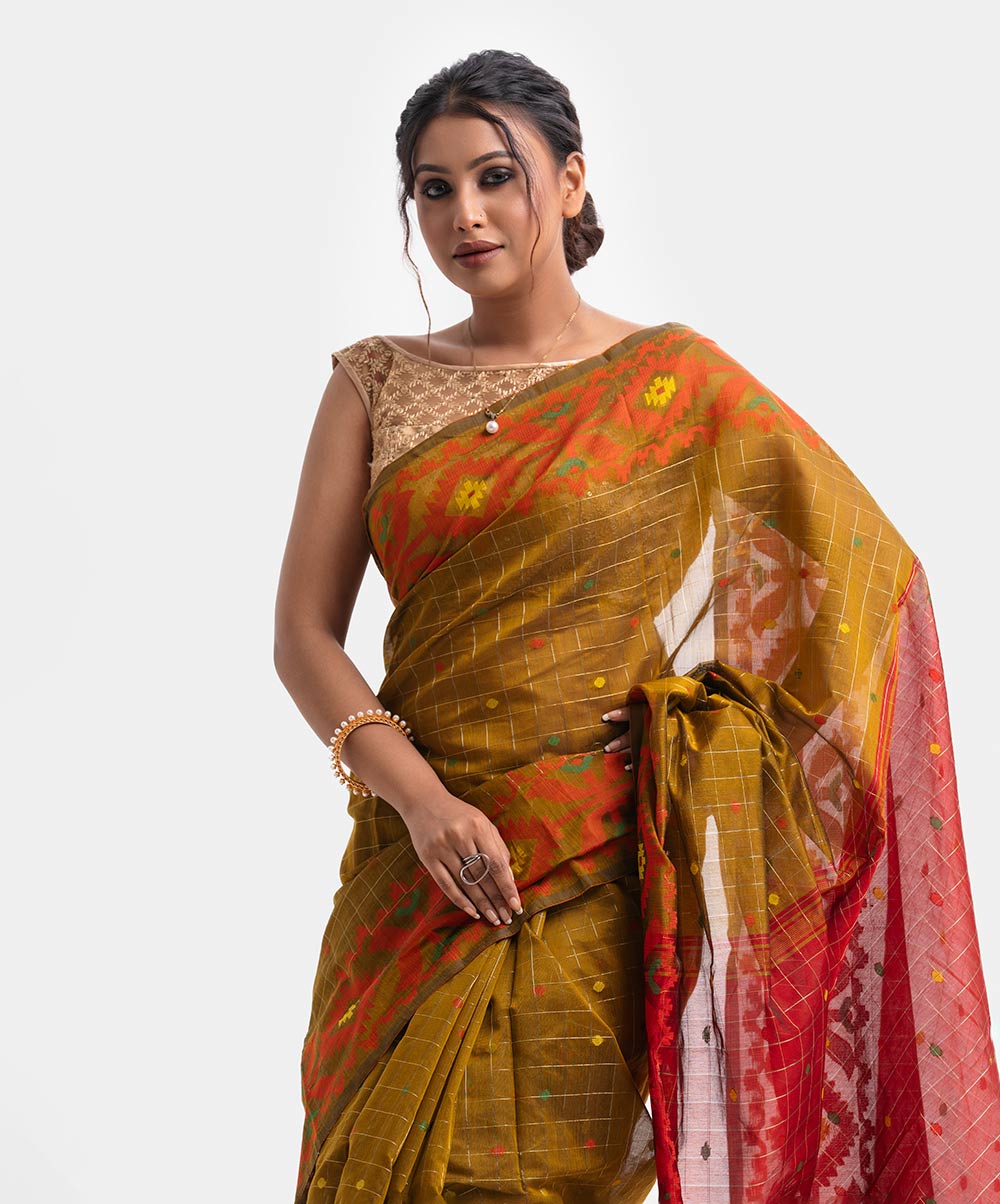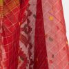 Women’s half silk saree with weaving details.