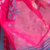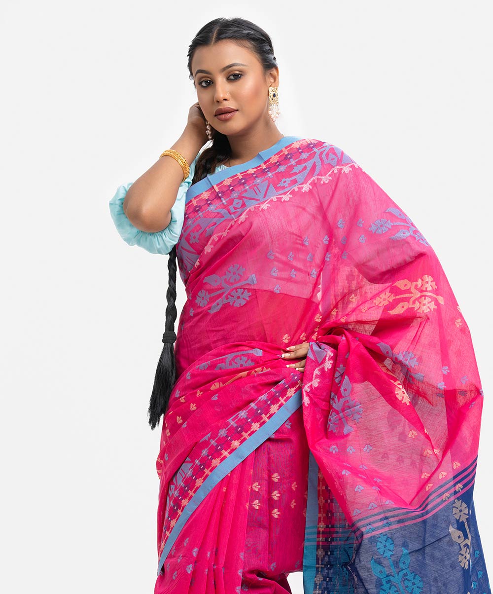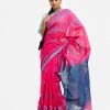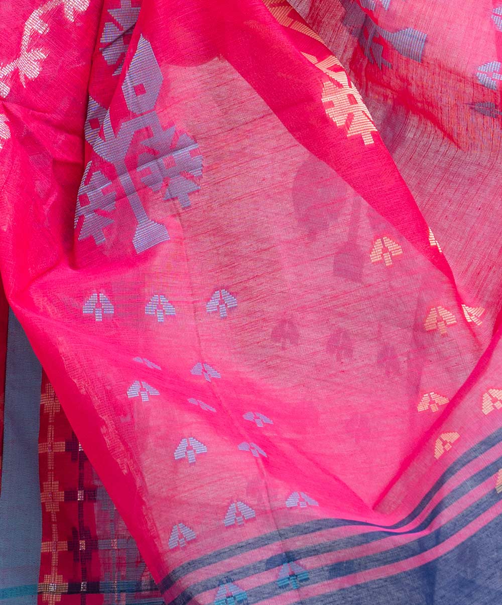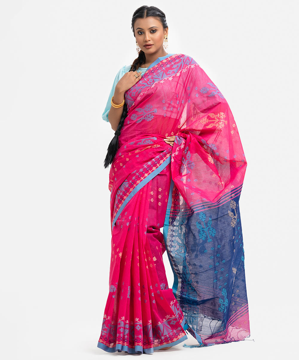 All-over weaving details half-silk saree, embellished with fringe trim at the border of Aanchal.