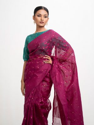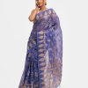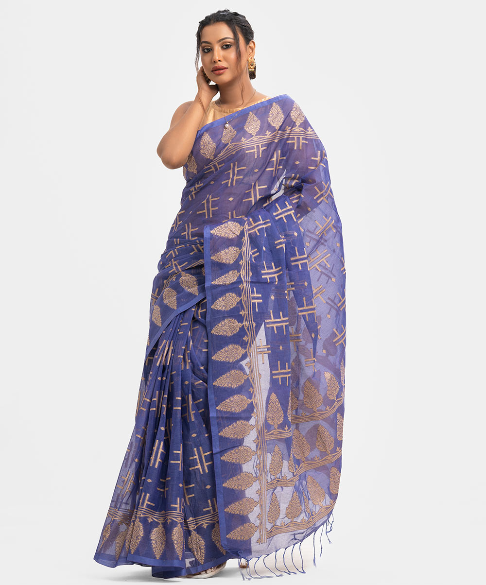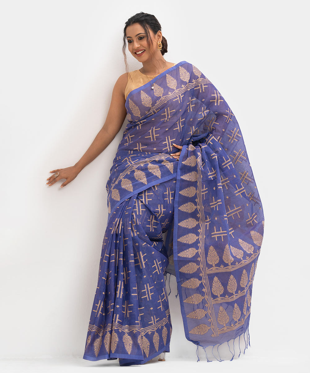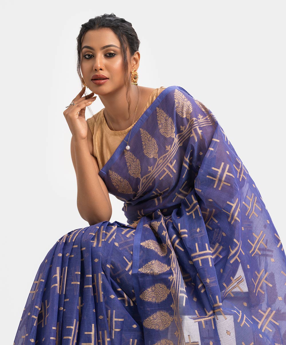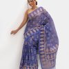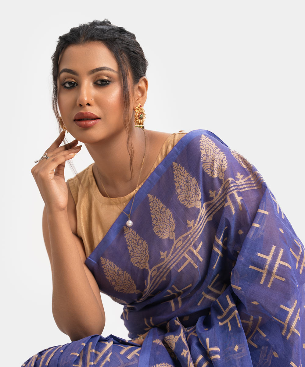 Women’s printed cotton saree with weaving details.