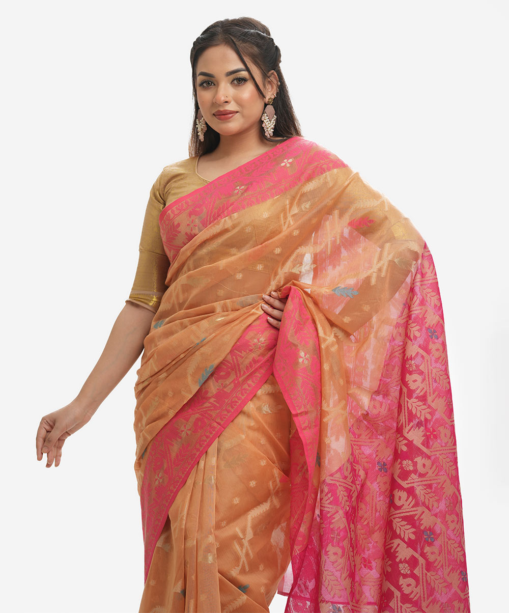 Golden & Red Cotton Saree