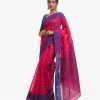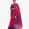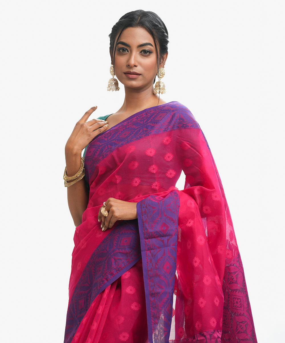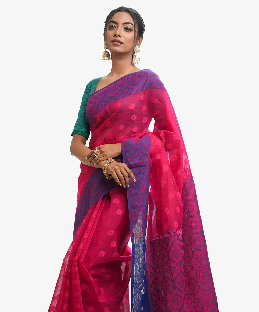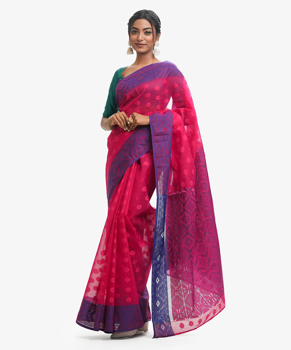 All-over weaving details saree in half-silk fabric. Jamdani pattern maroon Aanchal.