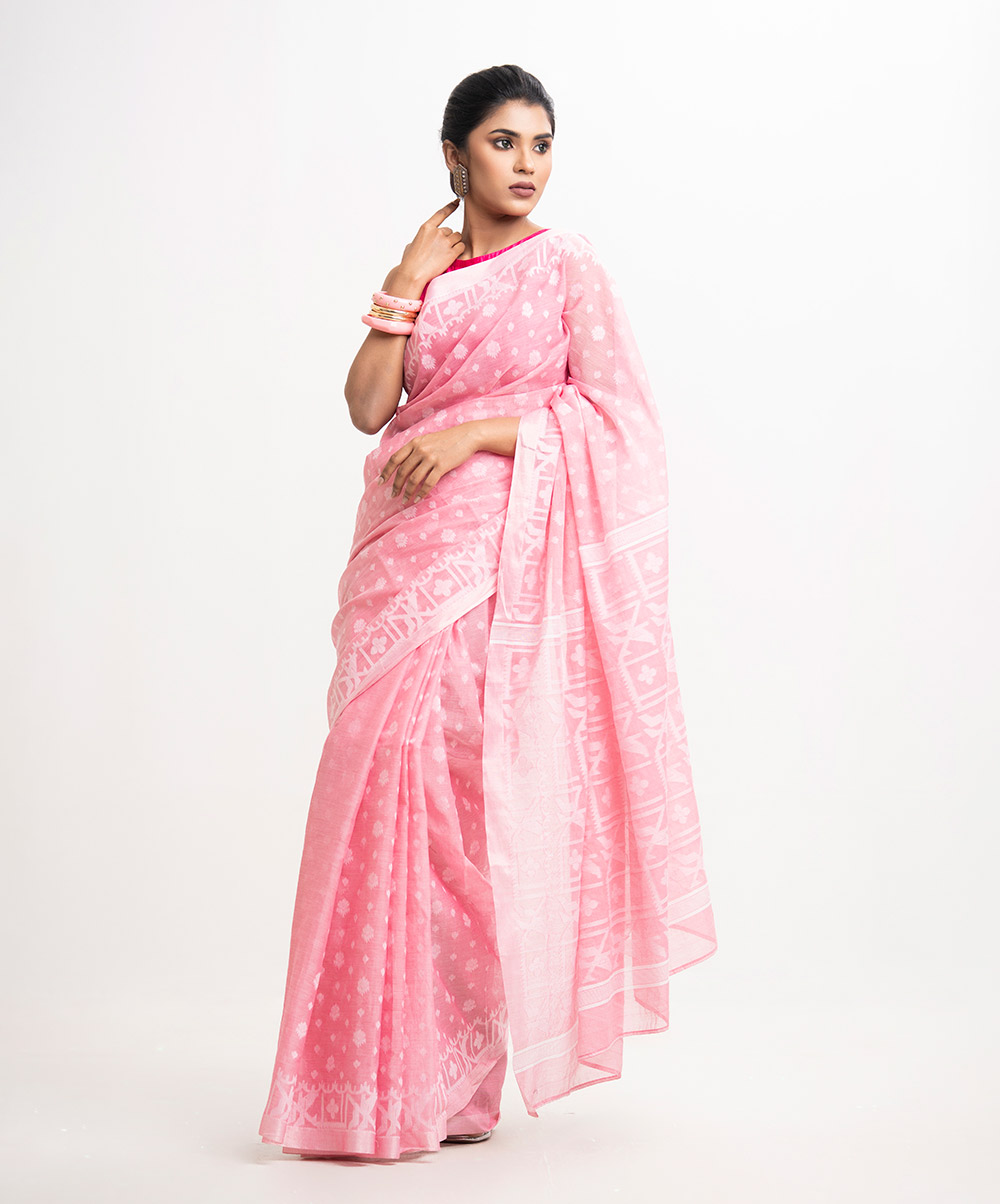 All-over Jamdani pattern weaving details saree in cotton fabric.