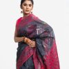 All-over jamdani pattern weaving details saree in half-silk fabric. Zari threads at the Aanchal.