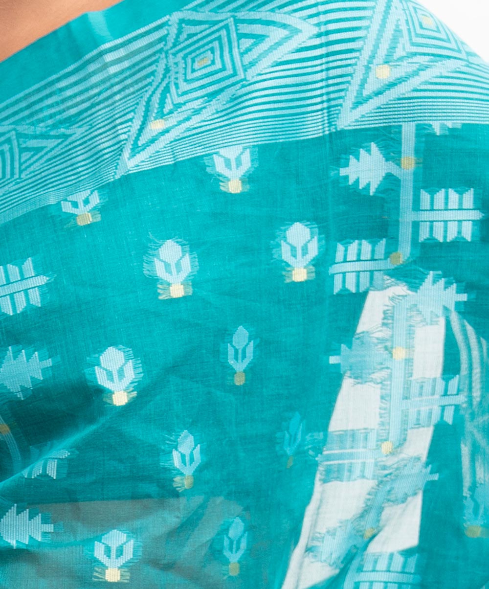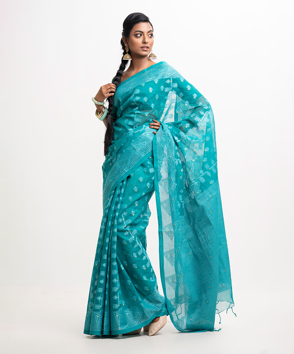 All-over weaving details saree in cotton fabric. Fringe trim at the Aanchal.