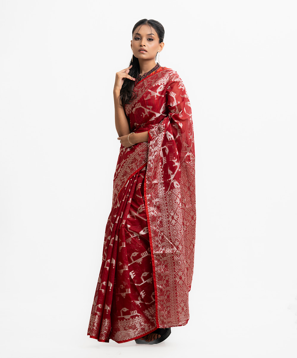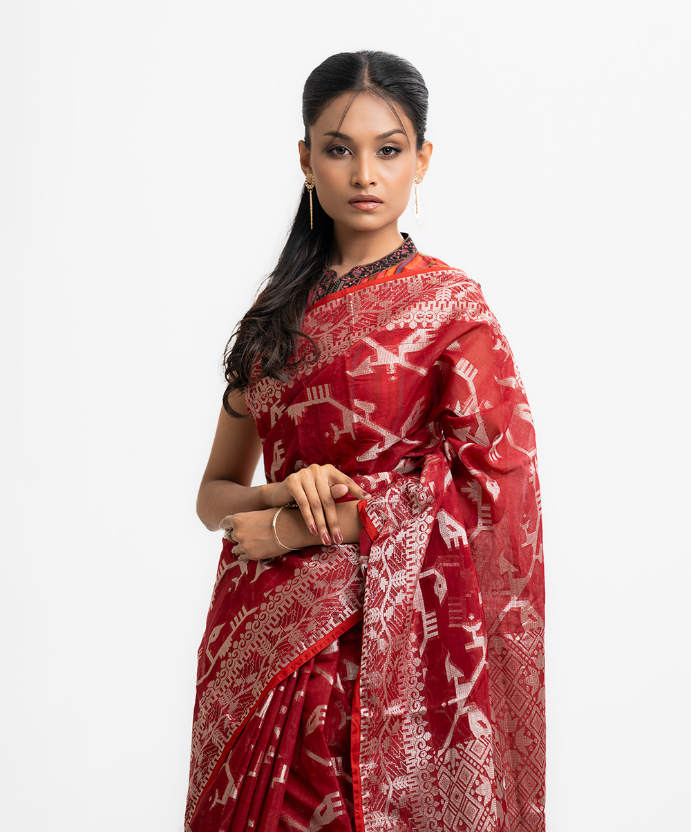 Red Half-silk Saree