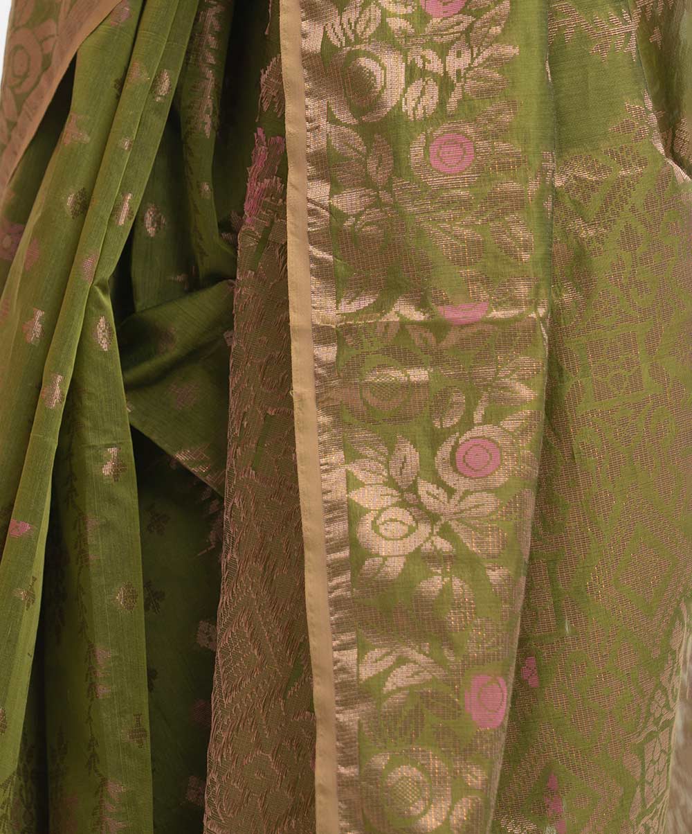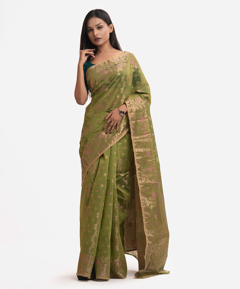 Olive Green Half-silk Saree