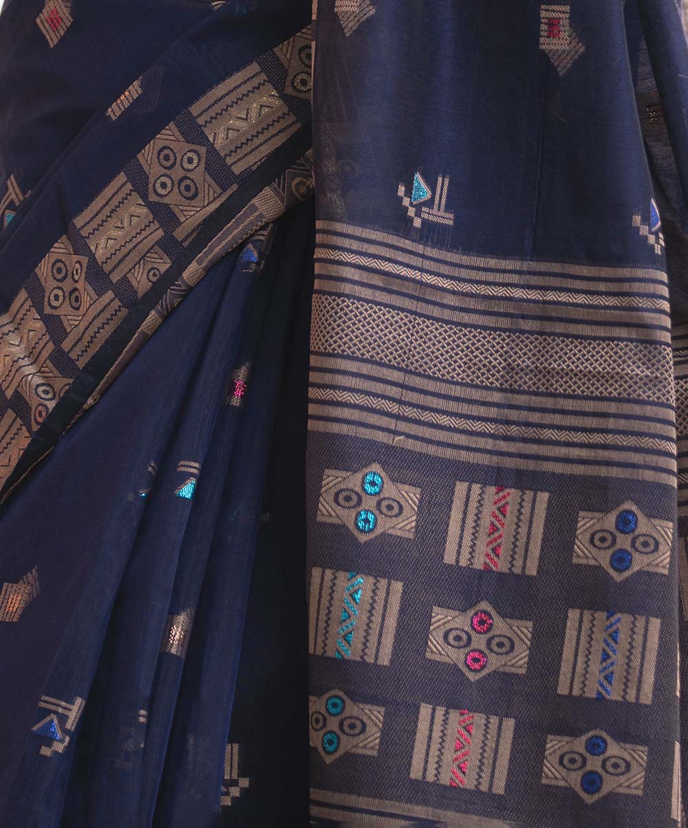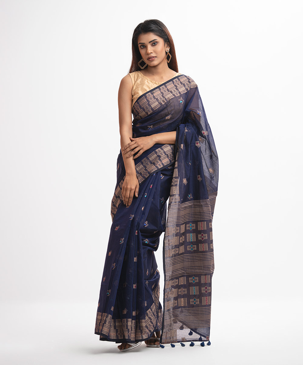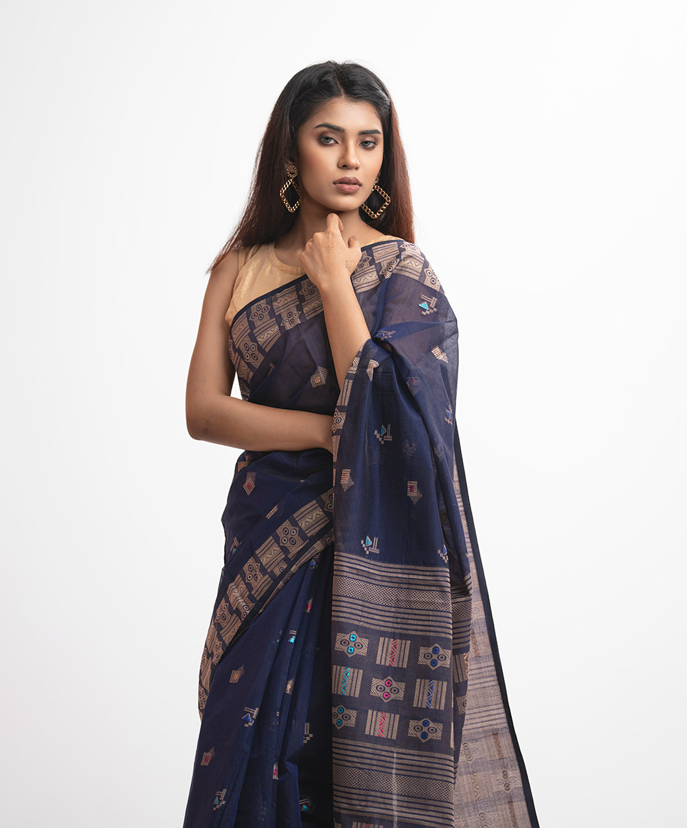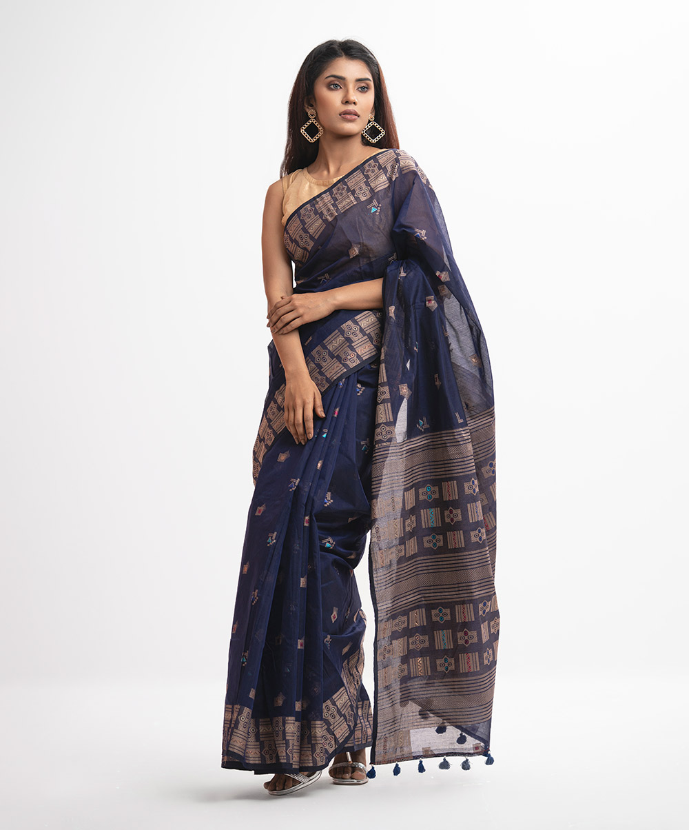 Navy Blue Half-silk Saree