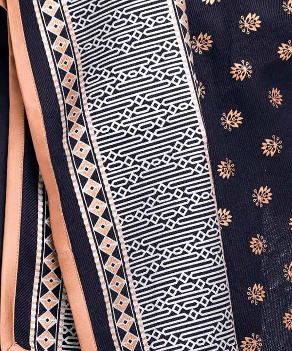 Black all-over printed Shawl in Cotton viscose fabric. Embellished with all-over matching borders and tassels.