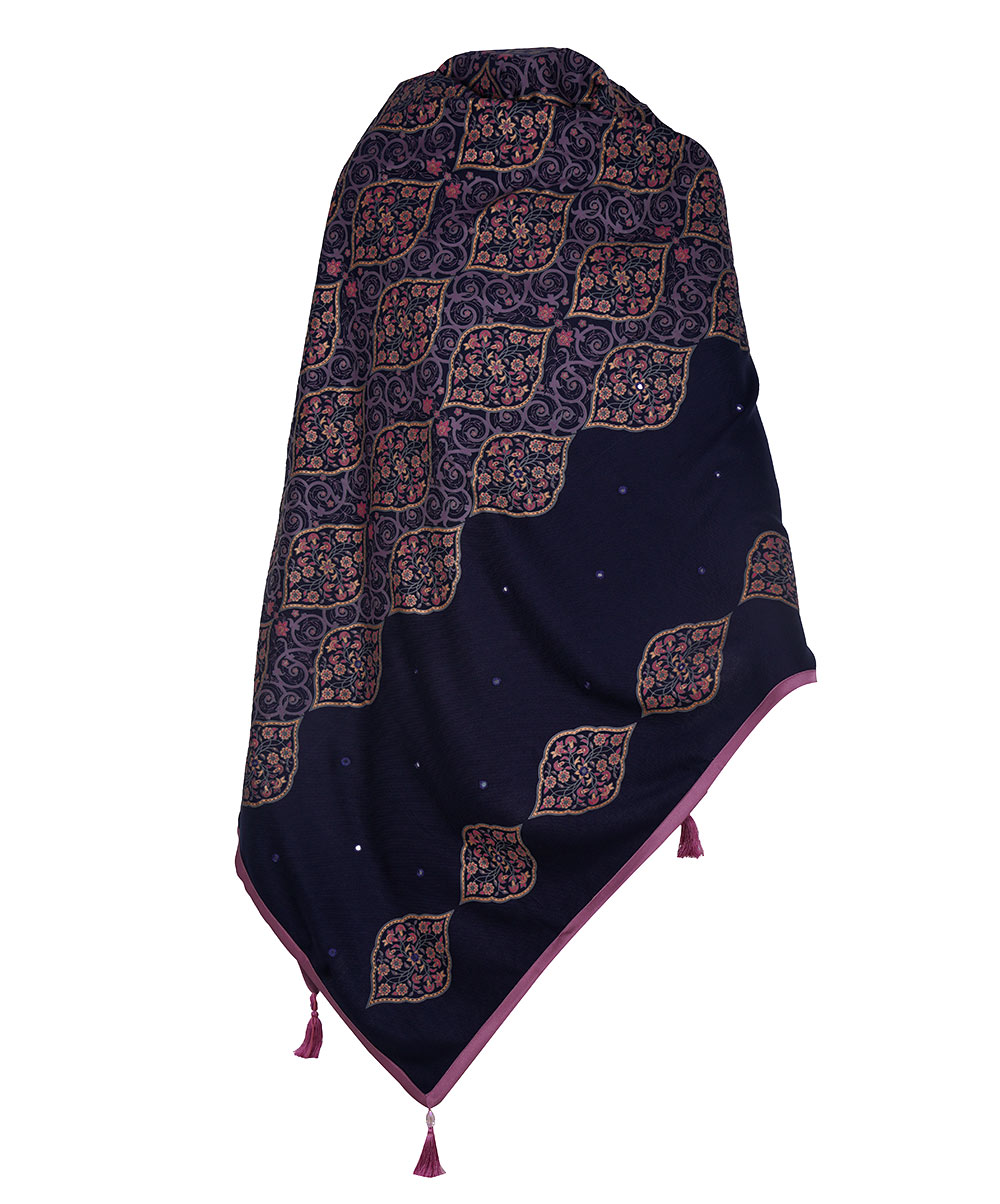 All-over printed Shawl in Cotton fabric with karchupi. Pink solid border with tassels.