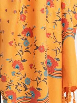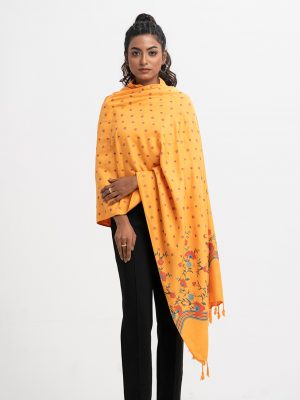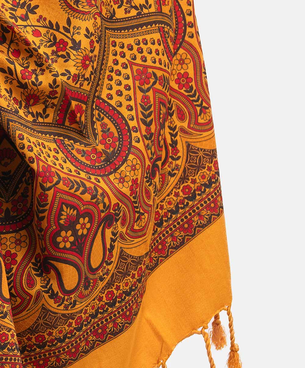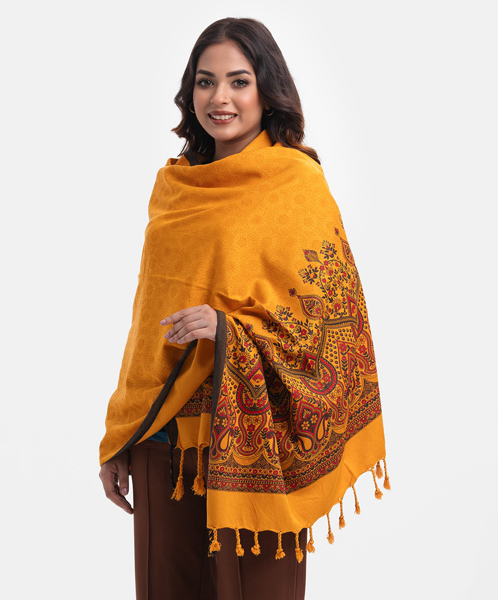 Women’s printed winter shawl in viscose fabric. Comes with fringe trim at the border.