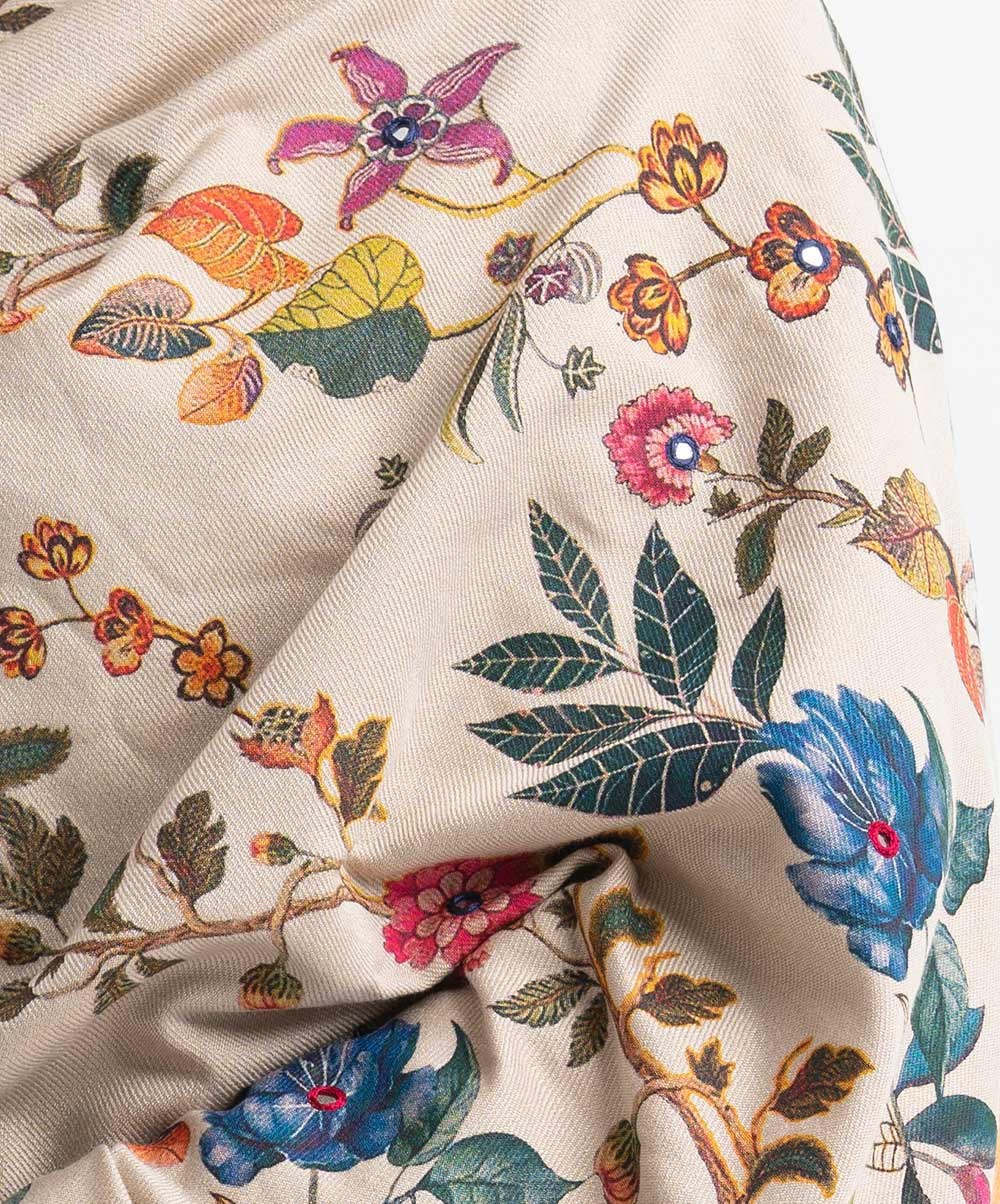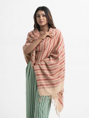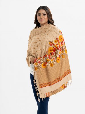 Women’s printed winter shawl in viscose fabric. Comes with karchupi and fringe trim at the border.