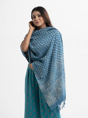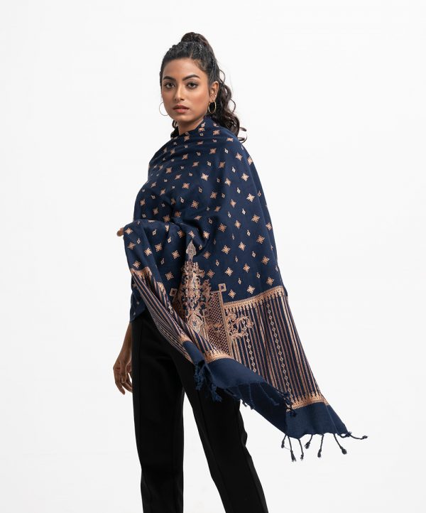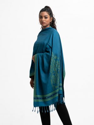 Women’s printed winter shawl in viscose fabric. Comes with karchupi and fringe trim at the border.