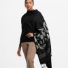 Women’s printed shawl in cotton viscose fabric. All-over embroidery and fringe trim.