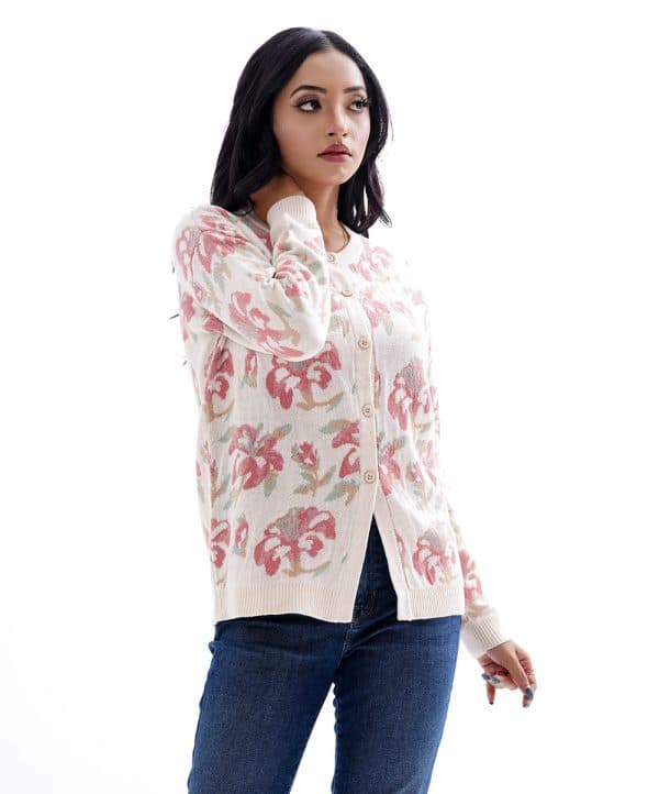 Off-white cardigan in Cotton knit fabric. Buttons at the front, a straight-cut hem, and ribbing at the neckline, cuffs, and hem.