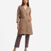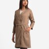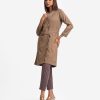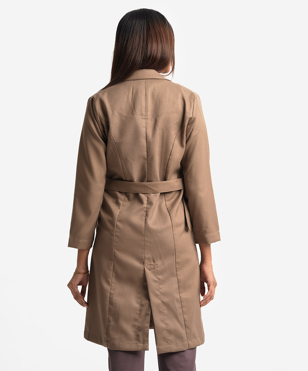 Princess-patterned, double-breasted trench coat in stretchable blended fabric. Patch pockets at the front with a tie-waist belt.