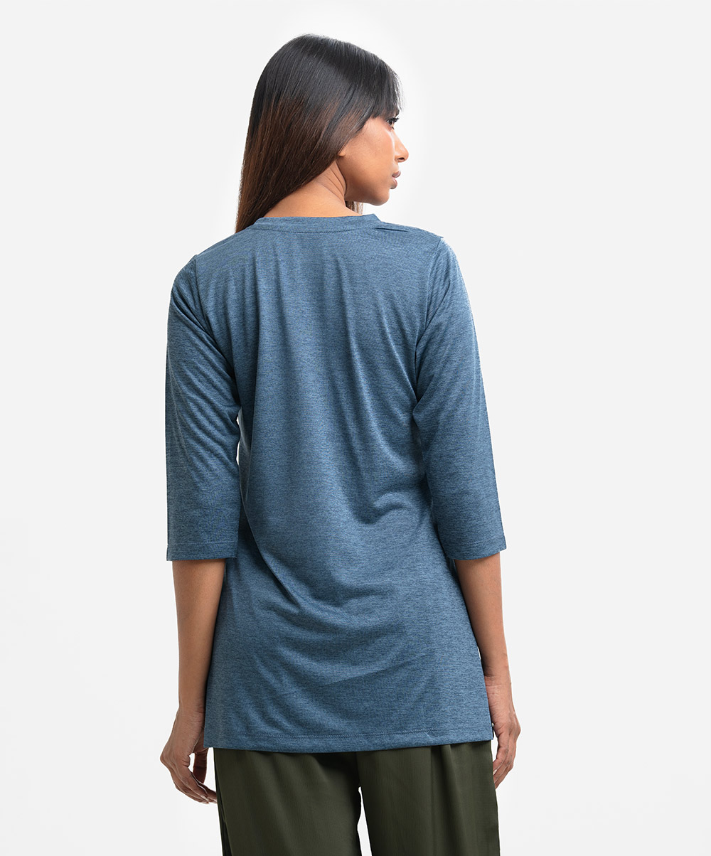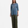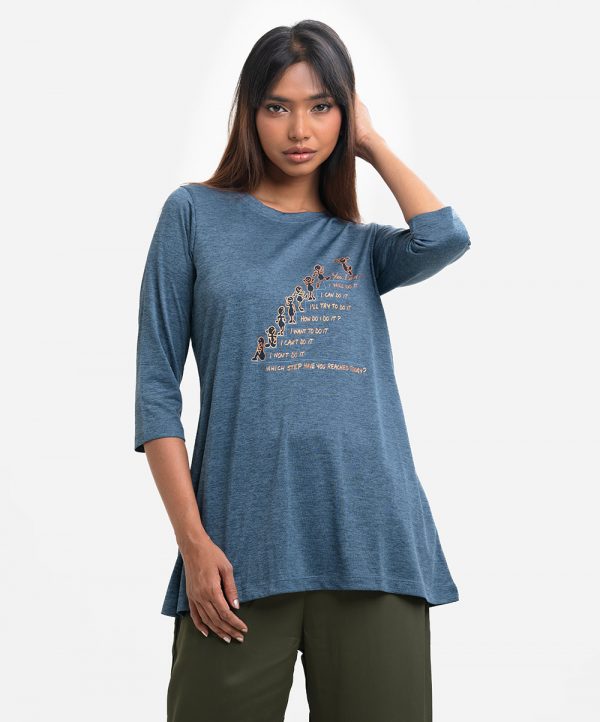 Ladies’ t-shirt in cotton knit fabric. Round neck, short sleeves and print at the front.