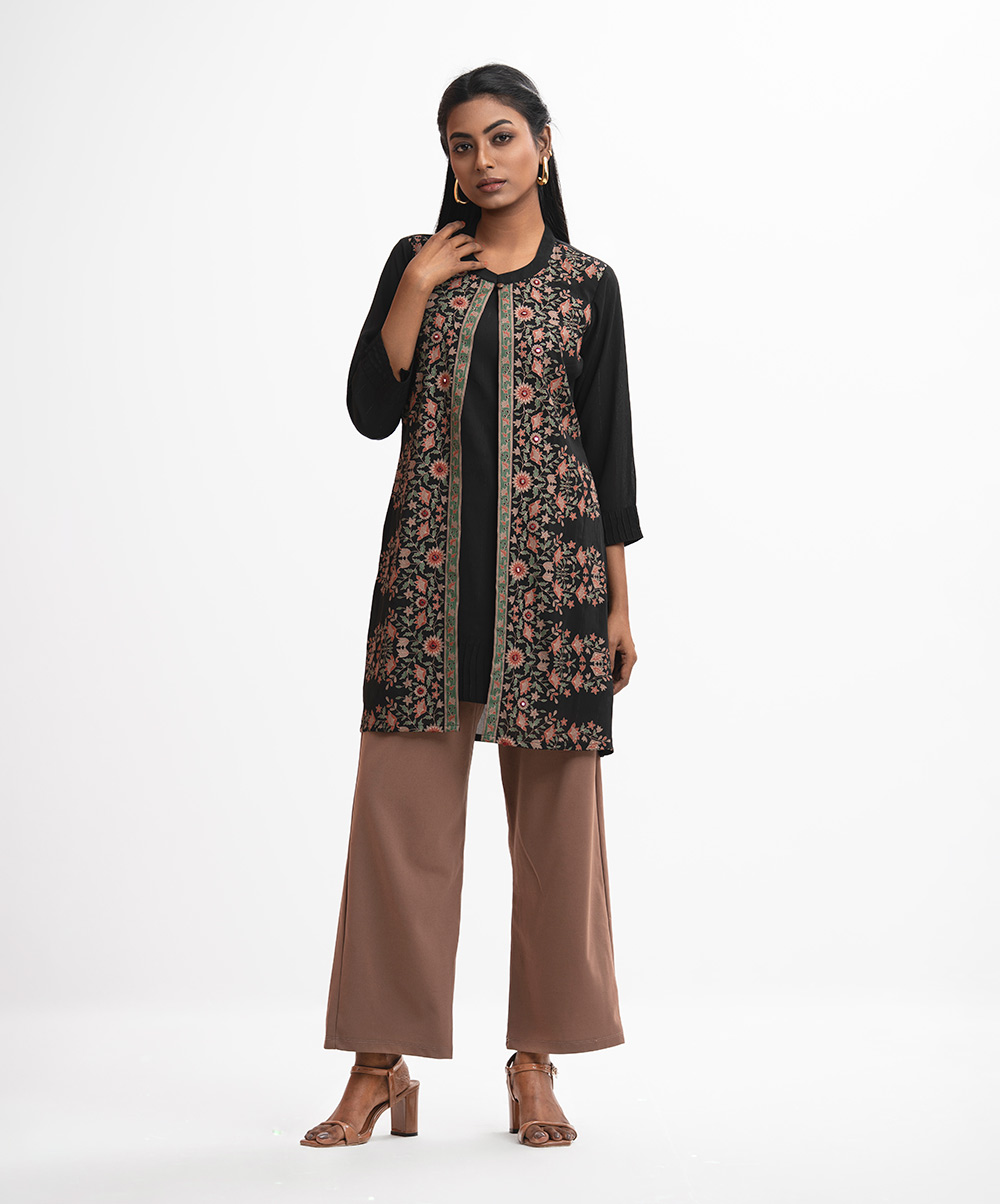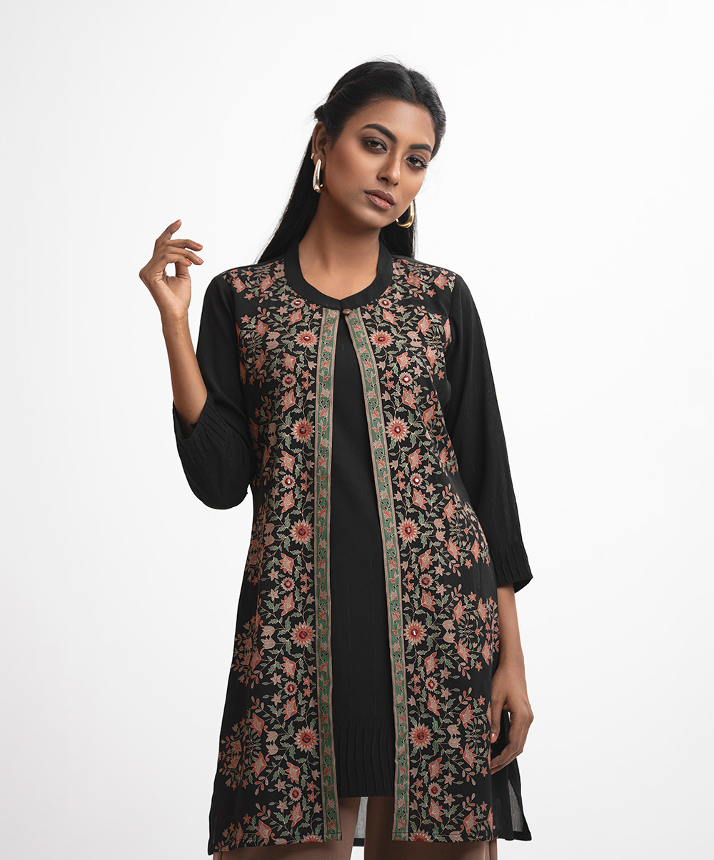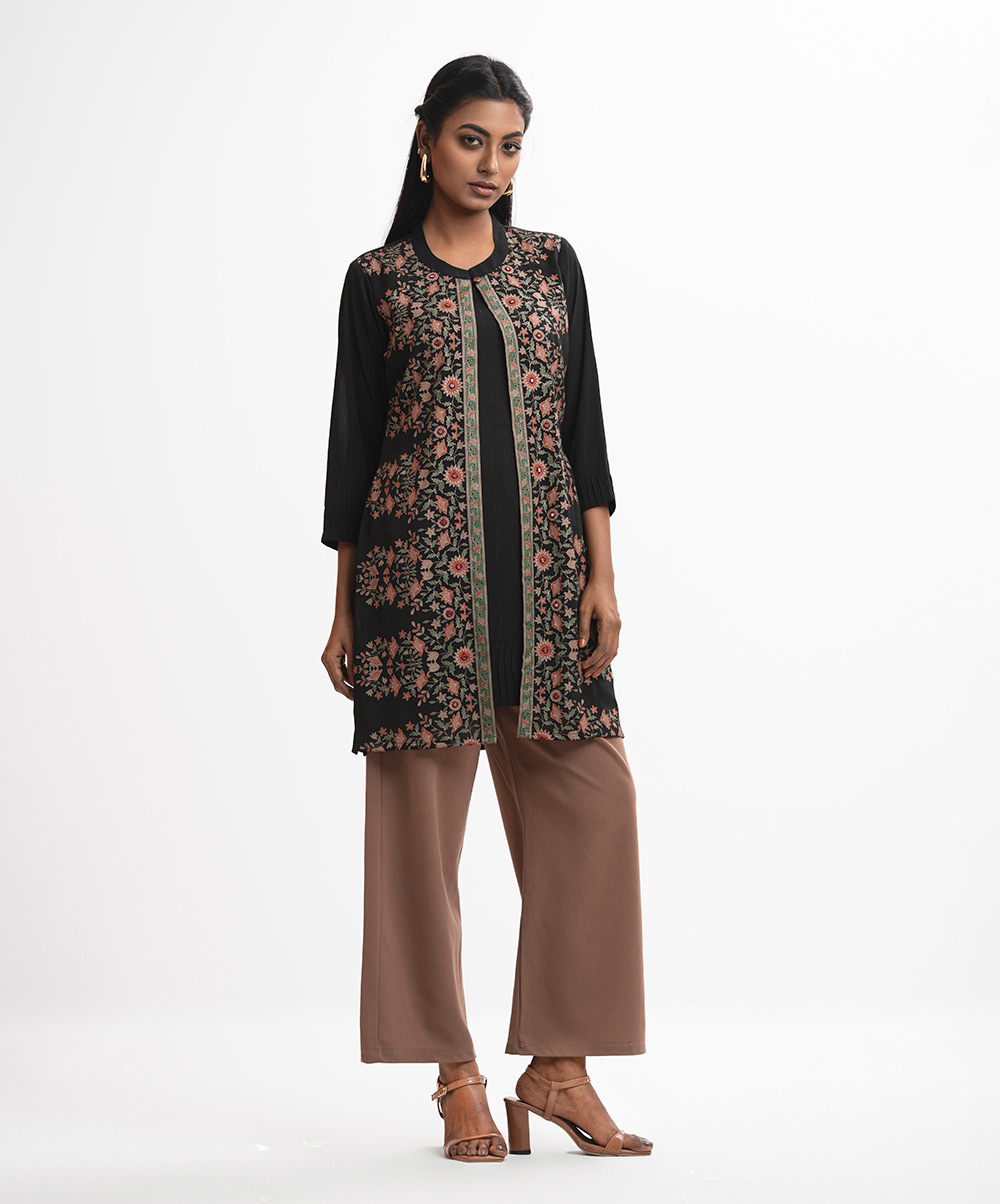 Black Georgette Tunic with Shrug