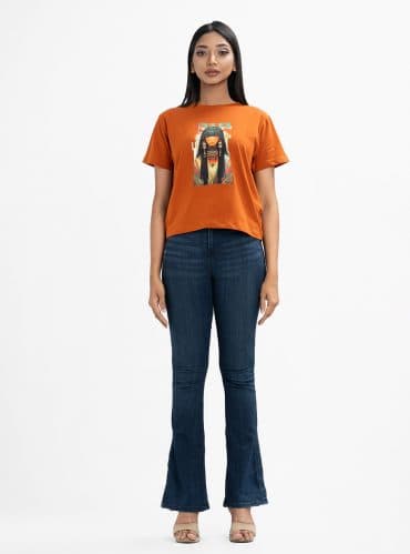 Women’s check printed tent-style top in georgette fabric. Frill round neck, three-quarter balloon sleeves. Pintuck, buttons and cutwork at front.