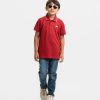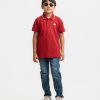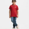 Kid boys Polo in cotton pique fabric. Classic collar, short sleeves and print at the front.