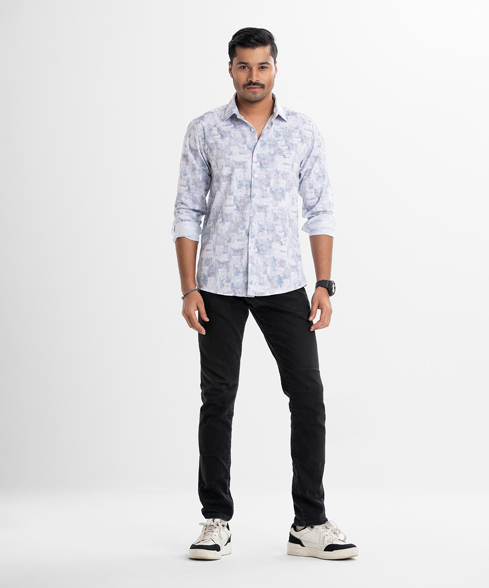 Men’s slim fit business casual premium shirt in stretched blended fabric. Spread collar, long sleeves with buttoned cuffs.