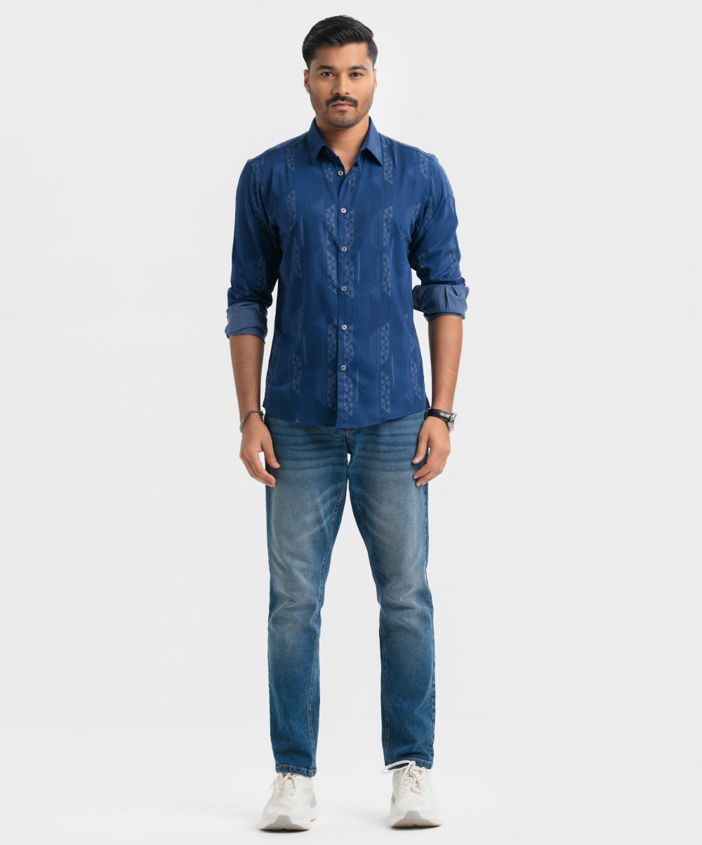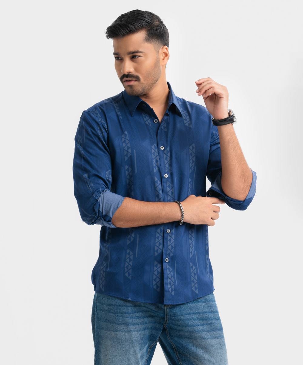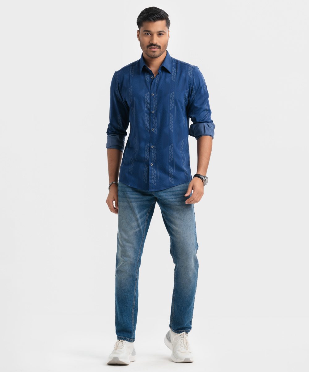 Men’s business casual shirt in cotton fabric. Classic collar, long sleeves with adjustable cuffs and button fastening at the front.