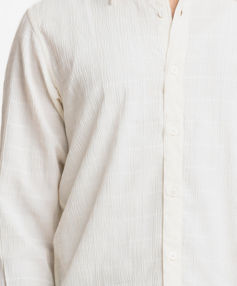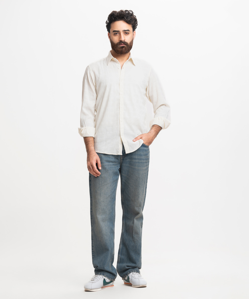Business casual shirt in premium cotton blend fabric. Classic collar, full sleeves with adjustable cuffs.