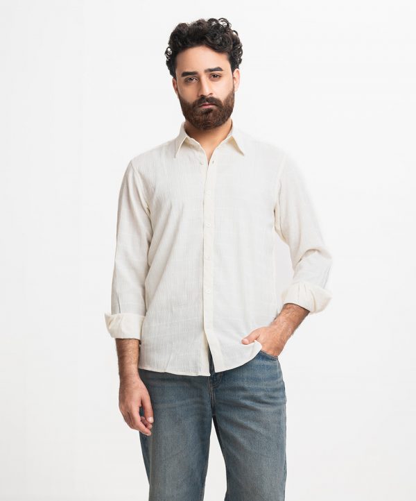 Business casual shirt in premium cotton blend fabric. Classic collar, full sleeves with adjustable cuffs.