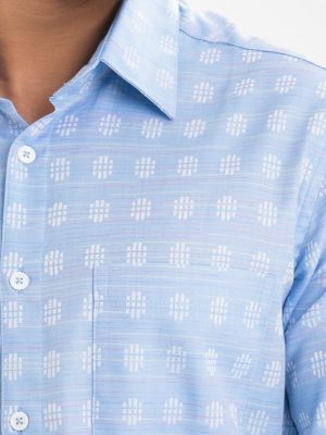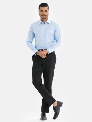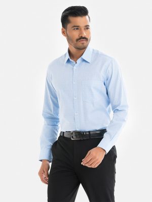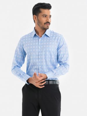 Sky blue cotton business formal shirt in slim fit and long sleeves.
